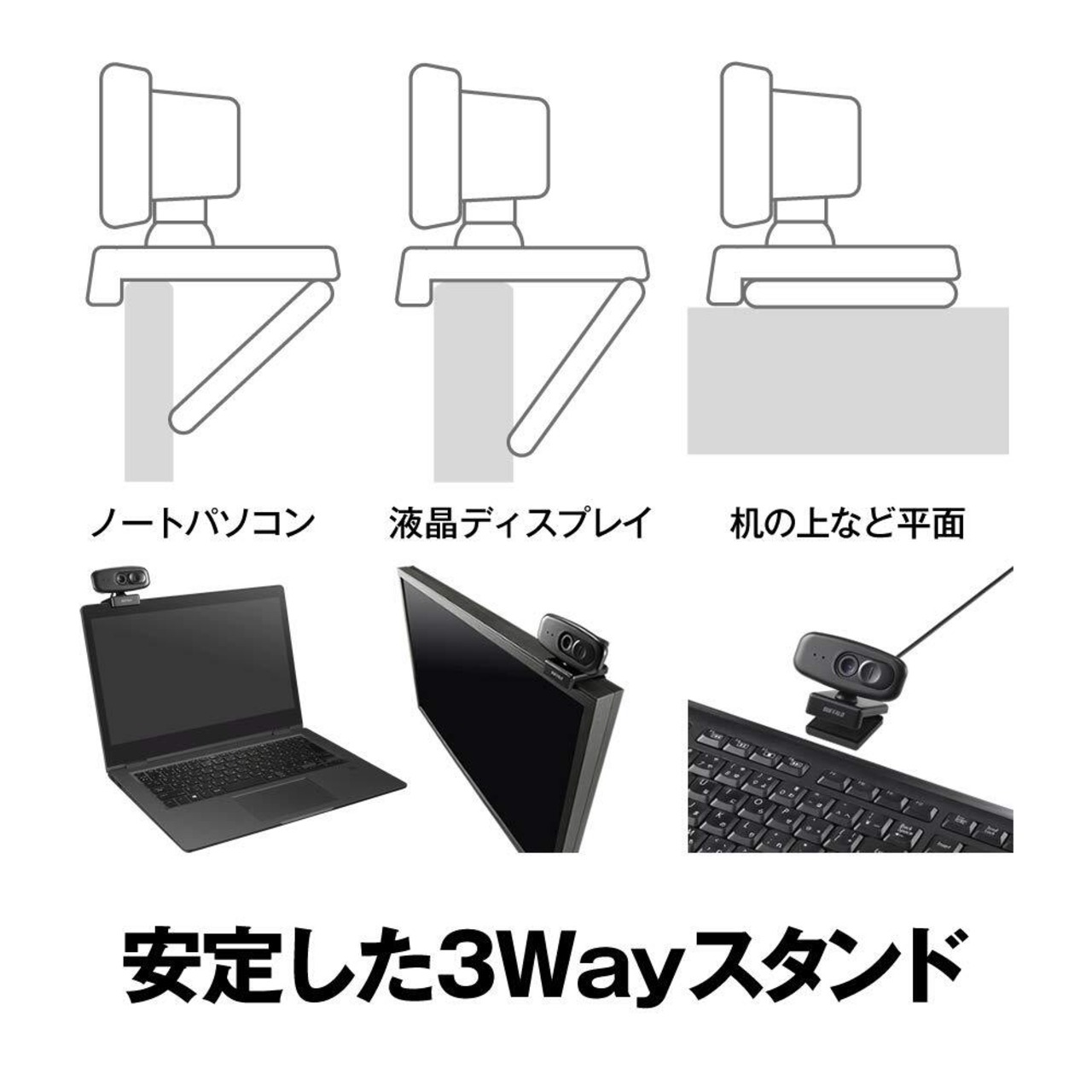 バッファロー WEBカメラ 1080P フルHD 30fps 200万画素 広角約120° Zoom/Slack/Microsoft Teamsメーカー動作確認済 Windows/Mac対応 プライバシーシャッター付 マイク内蔵 小型 シンプル 日本メーカー ケーブル2m ブラック BSW505MBK
