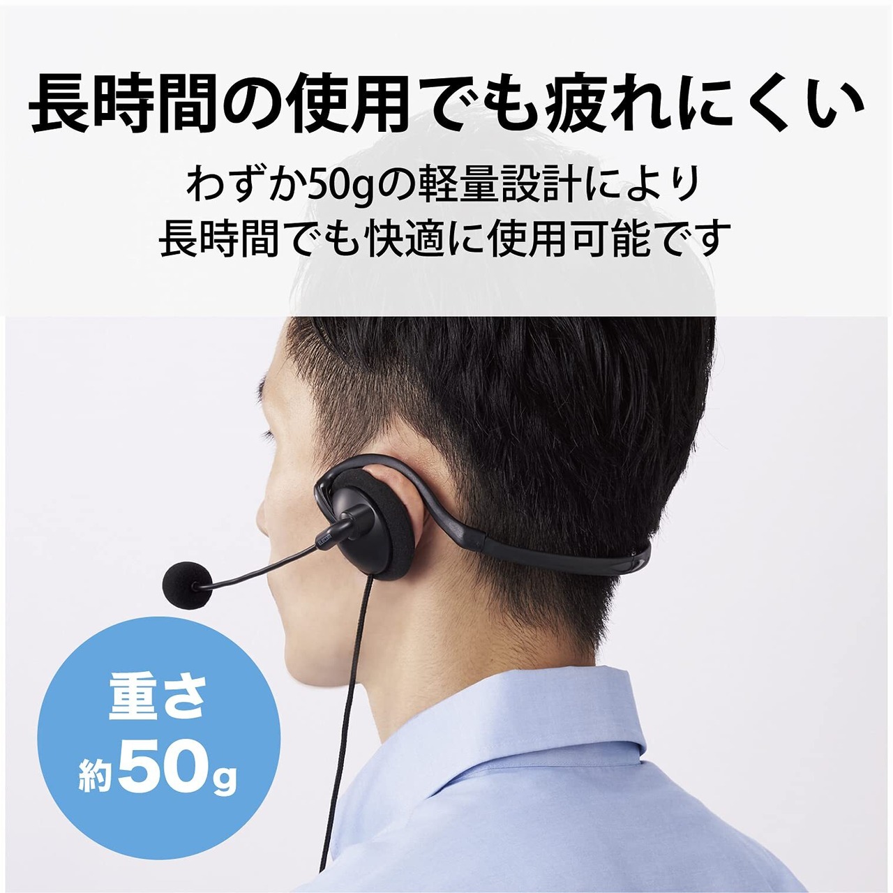 エレコム ヘッドセット 有線 ネックバンド 折りたたみ式 3.5mm接続 4極 変換ケーブル付 マイク 両耳 リモートワーク ブラック HS-NB06TBK