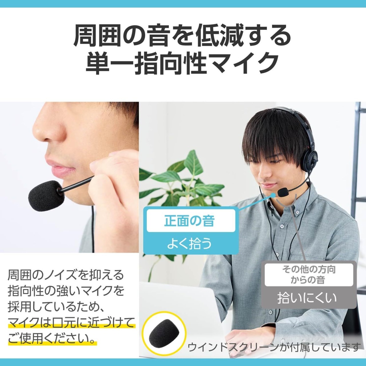 コンパクトに収納できる折りたたみ式で、かばんなどに入れやすく持ち運びにも便利な両耳オーバーヘッドタイプのヘッドセットです。USB Type-C(TM)対応のパソコンやスマートフォン、タブレットはもちろん、付属のUSB-A変換アダプターを使ってUSB-A対応のパソコンでも使用が可能。単一指向性マイクによるノイズキャンセリング性能で、自分の声を通話相手にクリアに届けることができます。外出先でのWeb会議などに便利です。