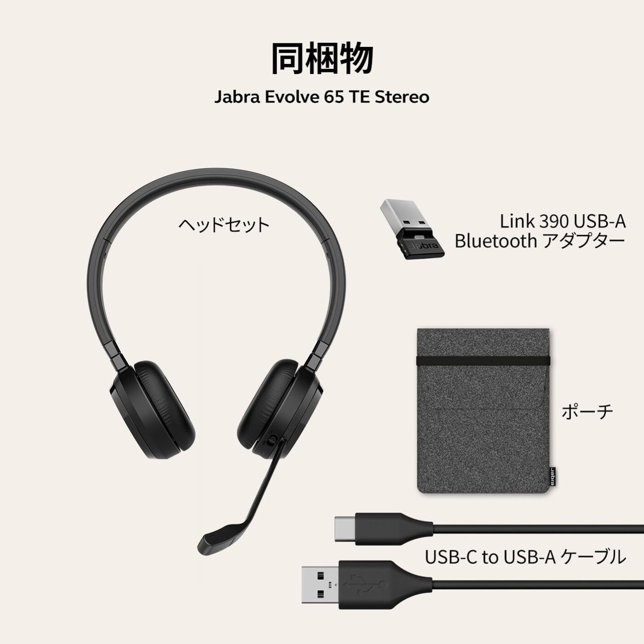 Jabra Evolve 65 TE ヘッドセット ワイヤレス 両耳 マイク付き 2台同時接続 Link 390a UC ステレオ Bluetooth5.2 ノイズキャンセリング 最長16時間通話 1日中快適なレザークッション Teams/Zoom利用可能 会議