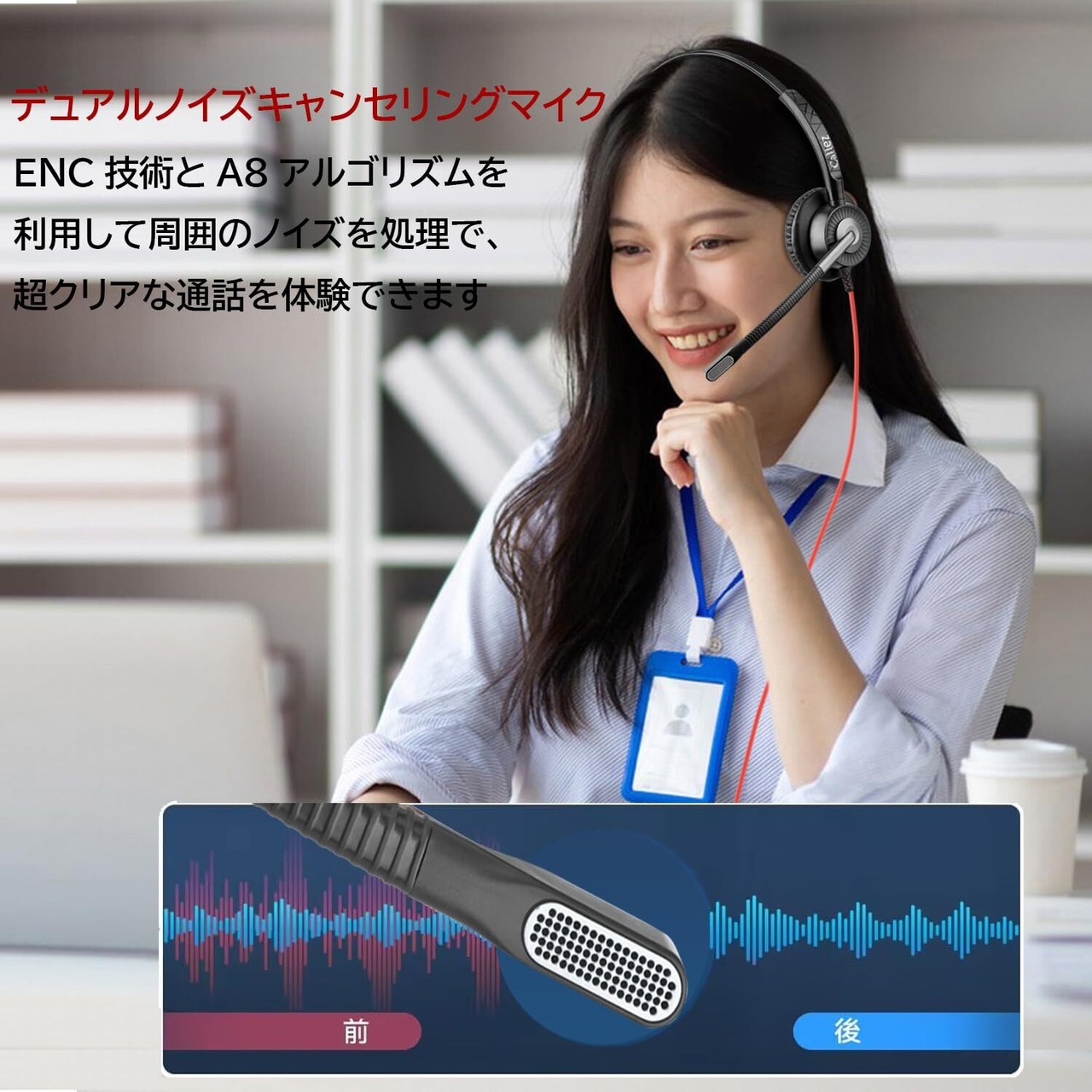 CallezヘッドセットUSB接続 マイク付き ダブルノイズキャンセリング PC用ヘッドホン 有線 両耳 高性能マイク付き ENC機能 着信応答/終話 音量調節 ミュート機能 350°回転 左右両対応 超軽量 超快適 クリアな通話 テレワーク/オンライン授業/在宅勤務/業務用/WEB会議/Zoom/Teams/Skype