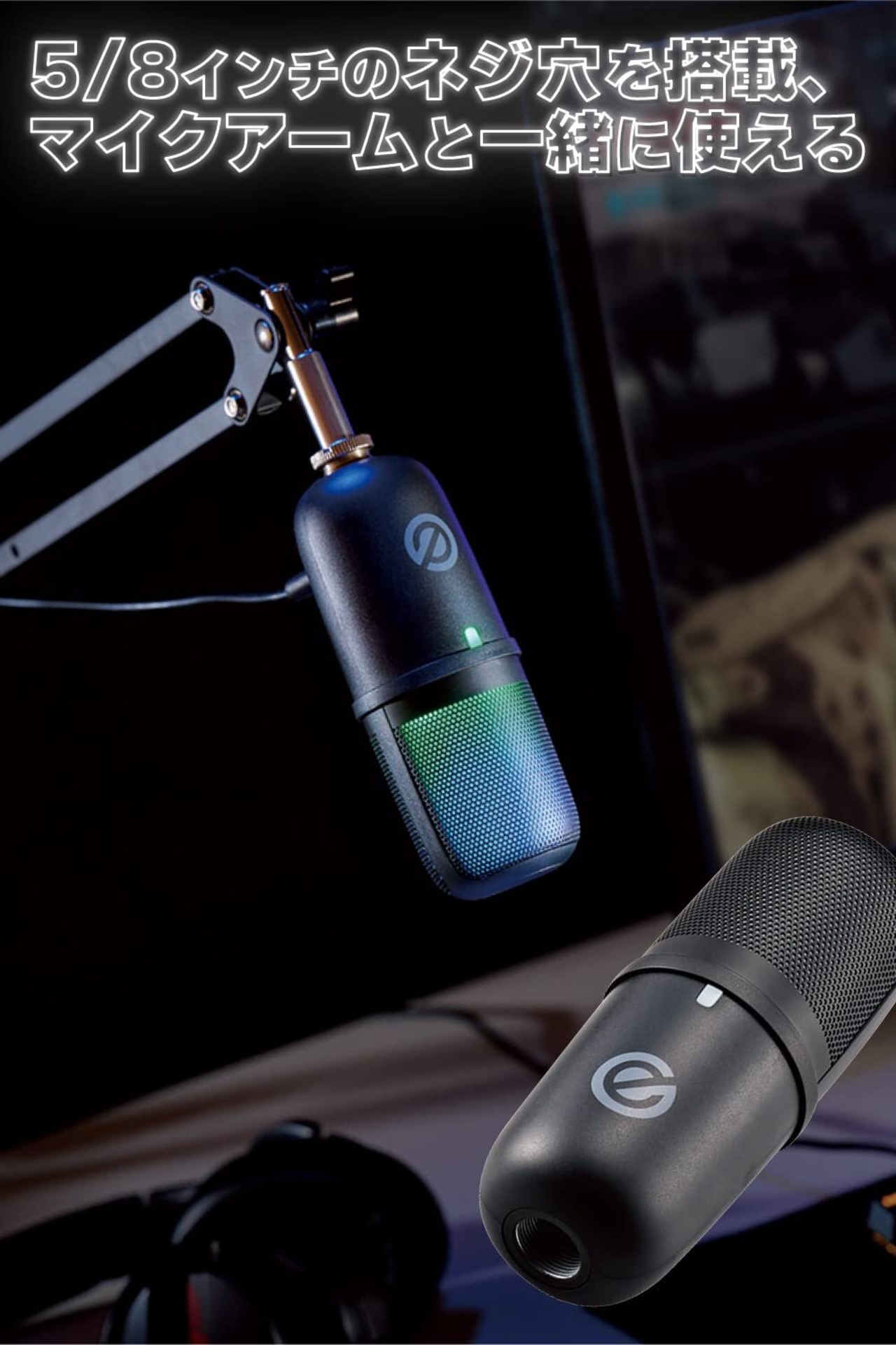 ゲーム実況・配信やプレイ中のボイスチャットで、きめ細かくクリアな音を届けたい方に。プロ仕様に近づけた、高音質・高感度のゲーミングマイクです。タッチセンサーによるマイクミュート機能、息が当たることで発生するポップノイズを防ぐガード付き。イルミネーションライトでグラデーションに光ります。