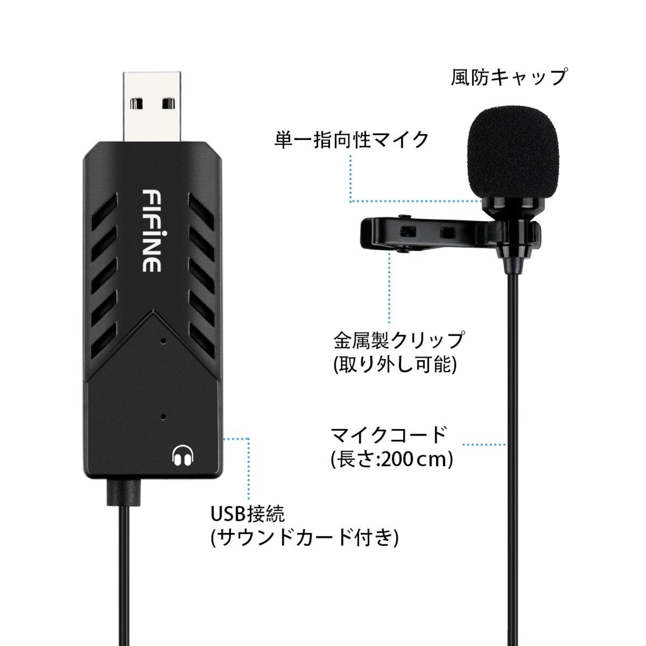 FIFINE USBピンマイク ミニクリップマイク コンデンサーマイク 単一指向性 イヤホン端子付き 音声モニタリング可能 PC用マイク ネット通話 ゲーム実況 ライブ配信 録音 在宅勤務 会議用 Windows/Macに対応 適格請求書発行可 K053