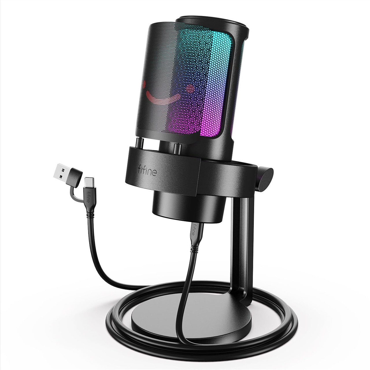 FIFINE ゲーミング マイク USB PC マイク ストリーミング ポッドキャスト レコーディング用 コンデンサー デスクトップコンピューターマイク RGB変換コントロール タッチ式ミュート ヘッドホンジャック ポップフィルター スタンド付き RGBゲーミングマイクAmpliGame A8 ブラック