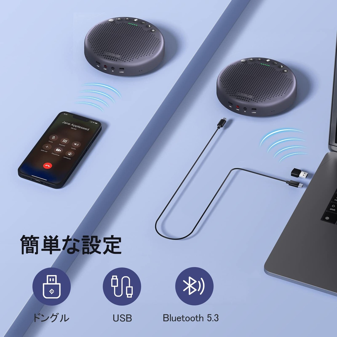EMEET Luna Plus Kit スピーカーフォン 8マイク+1拡張マイク 会議用 マイクスピーカー 360°音声ピックアップ エコー・ノイズのキャンセリング 14人まで対応 web会議マイク USB C/Bluetooth5.3/Dongle対応 連結機能 双方向通話 集音マイク オンライン会議・テレワーク・在宅勤務 Skype/Zoom/Teams/通話アプリ対応