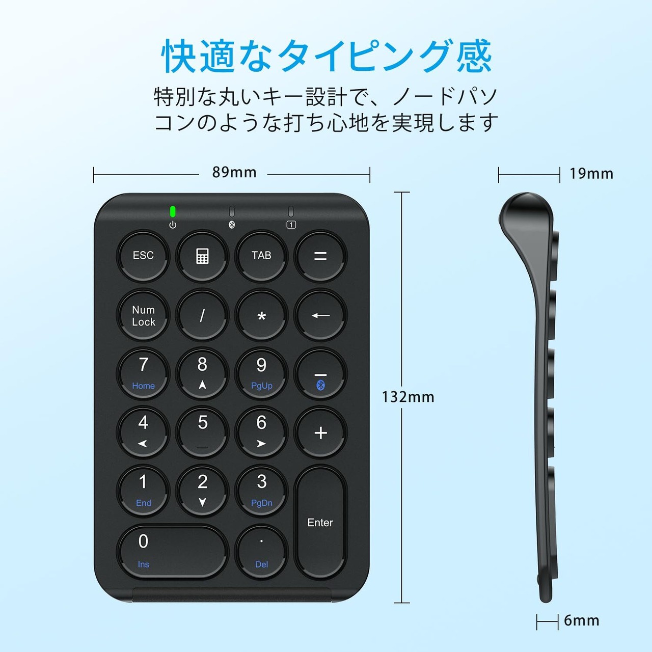 【便利なテンキー】Bluetooth5.1を採用し、遅延のない作業が可能です。一度ペアリングすれば次回以降は自動的に接続されます。本製品はtabなどのキーを搭載しているため、Excelやスプレッドシートなどを使用する際、格段に作業効率が上がります。※本製品は「技適認証済み」製品ですので安心してお使い下さい。