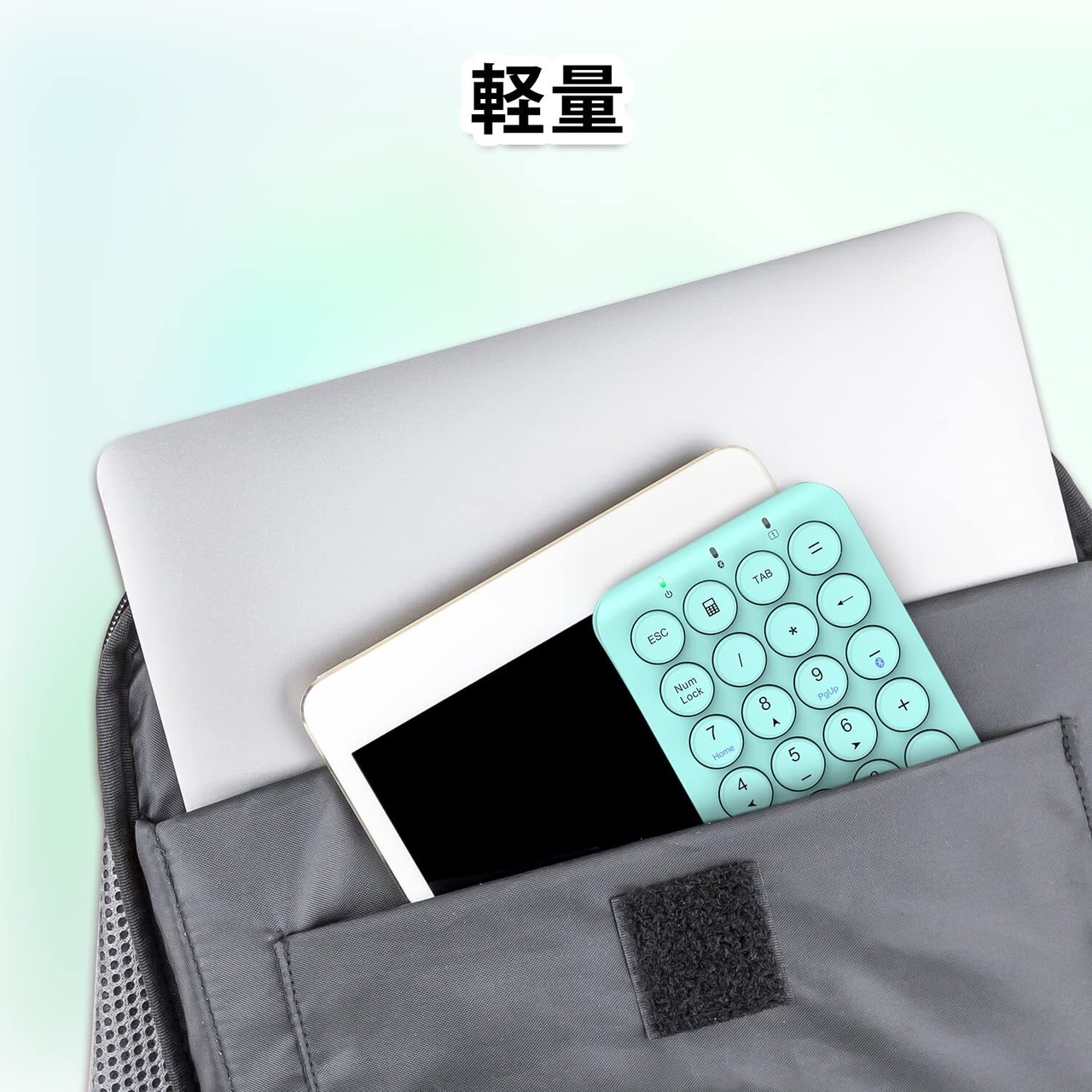 iClever テンキー Bluetooth ワイヤレス 数字 キーボード パンタグラフ式 Type-c充電 超薄型 Tabキー付き ブルートゥース テンキー 無線 ナンバーパッド 左手デバイス 片手デバイス ショートカットキー 高耐久 PC ノートブック用 Windows/iOS/Android など対応 IC-KP08 ミントグリーン