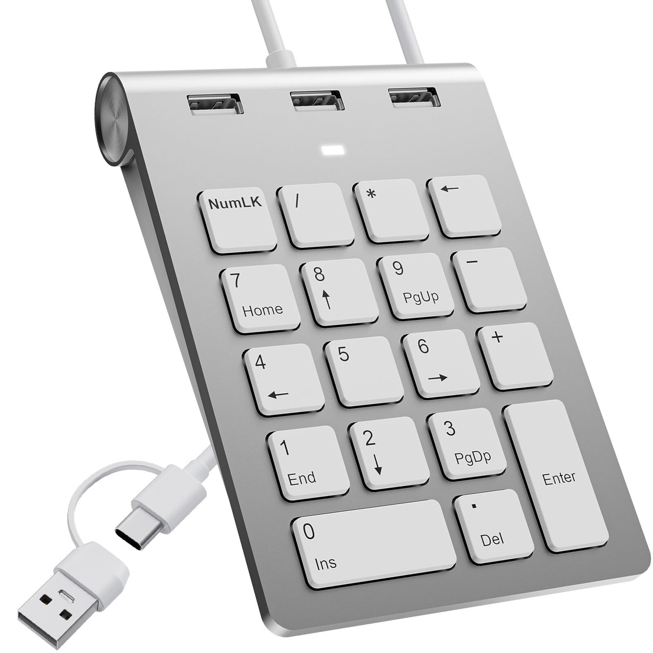 有線テンキー18キー薄型 USB A/Type-C テンキー人間工学ミニテンキー 3つのUSB 2.0ポートを装備、18キー、オフィス計算用テンキー、mac テンキー 片手デバイス 外部 PC/Laptop/Windows/iOS/Android 対応 多機能ナンバーパッドPC用