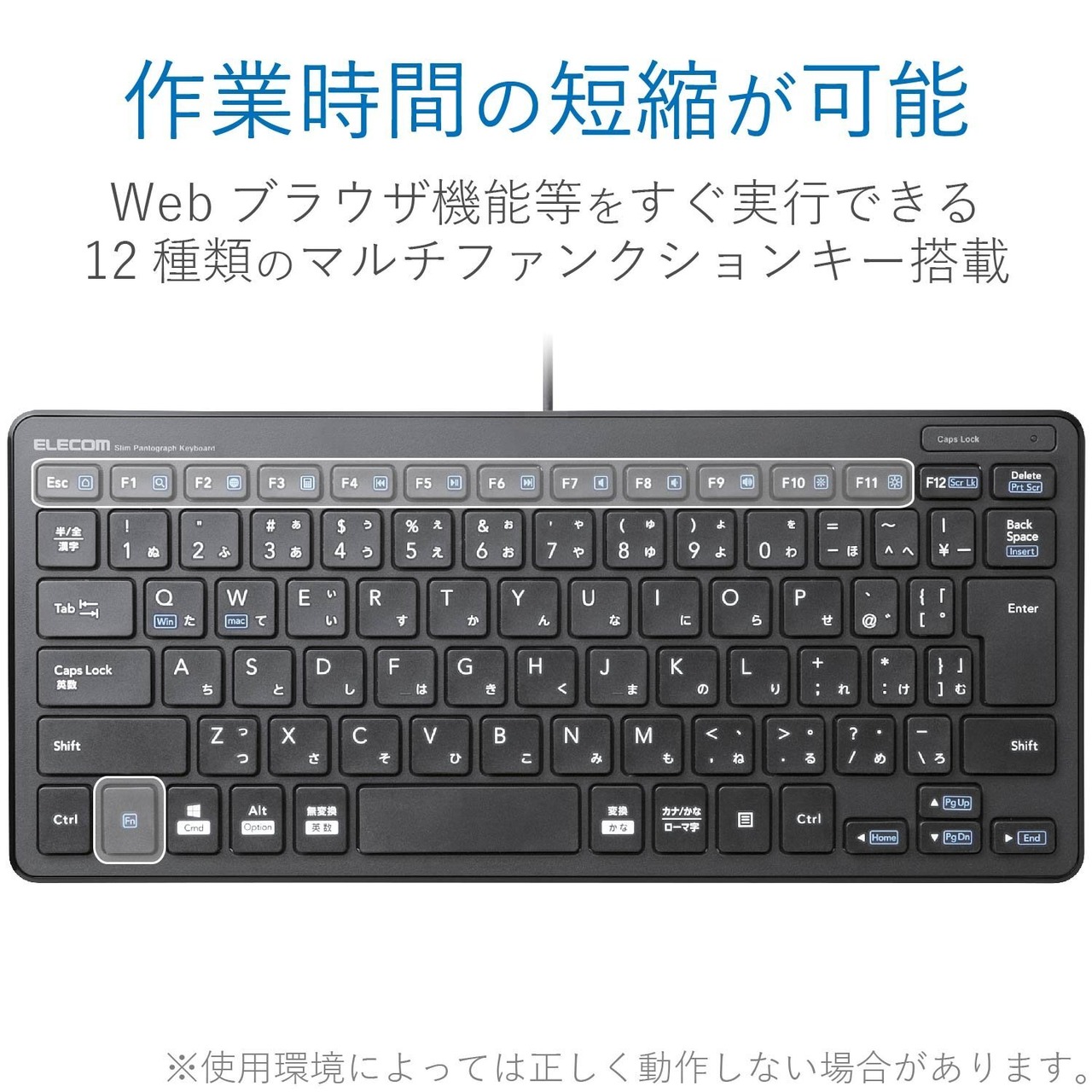 エレコム キーボード 有線 パンタグラフ ミニキーボード ブラック TK-FCP096BK