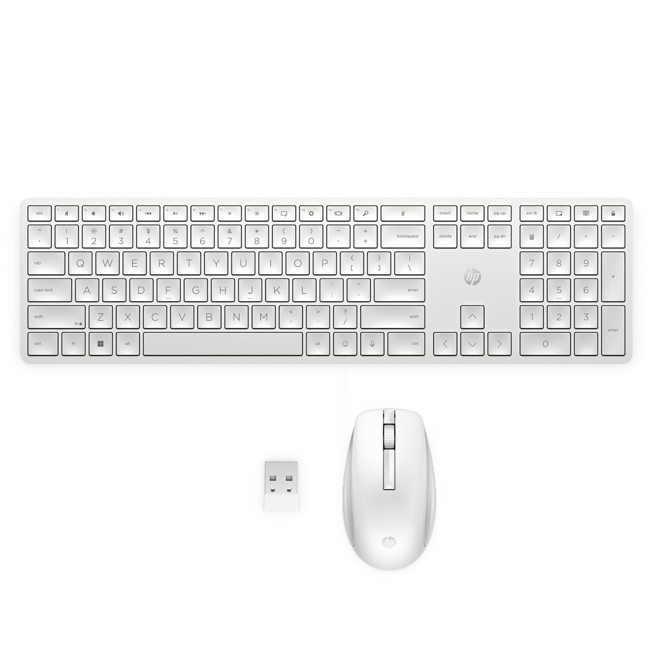 HP 650 ワイヤレス キーボード マウス セット ホワイト 日本語配列 USBドングル 2.4GHzワイヤレス接続 ガラステーブルでも操作可能なマウス カスタマイズ可能なキーボード