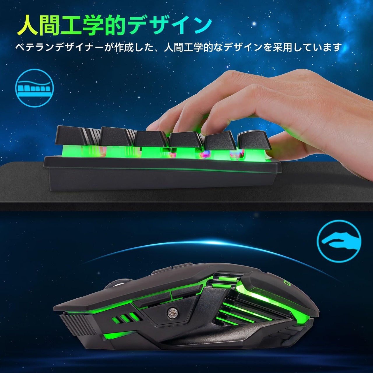CHONCHOW ワイヤレス ゲーミングキーボードマウスセット 充電 光る キーボード ワイヤレス 2.4GHz 無線 キーボード 4段階DPIマウス 日本語配列 19キー防衝突 ps4/ps5対応 RGB PC/Windows/Mac対応 G112