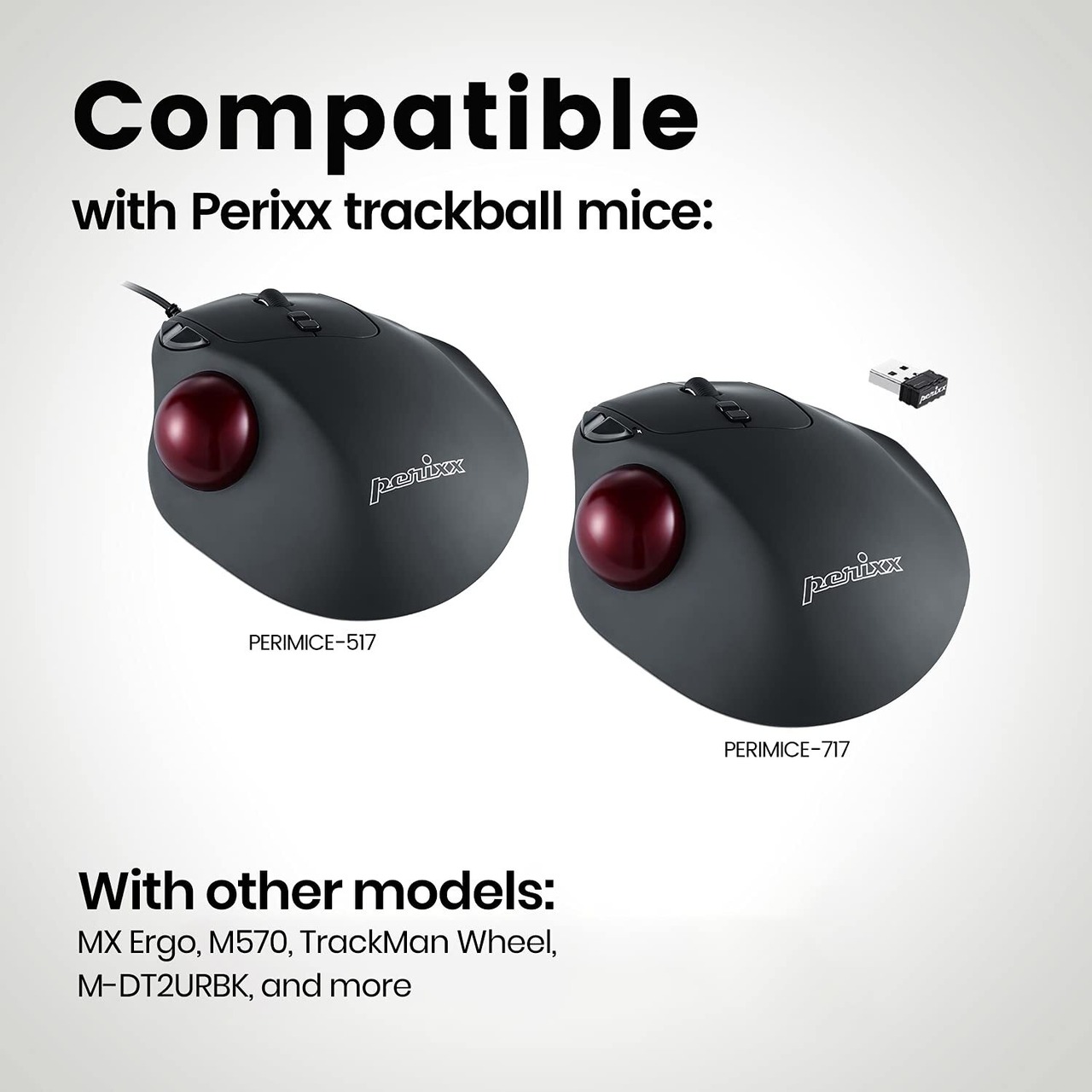 PERIPRO-303 GRは光沢加工、上品さのある暗赤色の交換用ボールです。直径 34 mm/本体重量約25g。ぺリックスPERIMICE-517/717のほかロジクール M570 やエレコムなどの34mmトラックボールにも互換性があります。