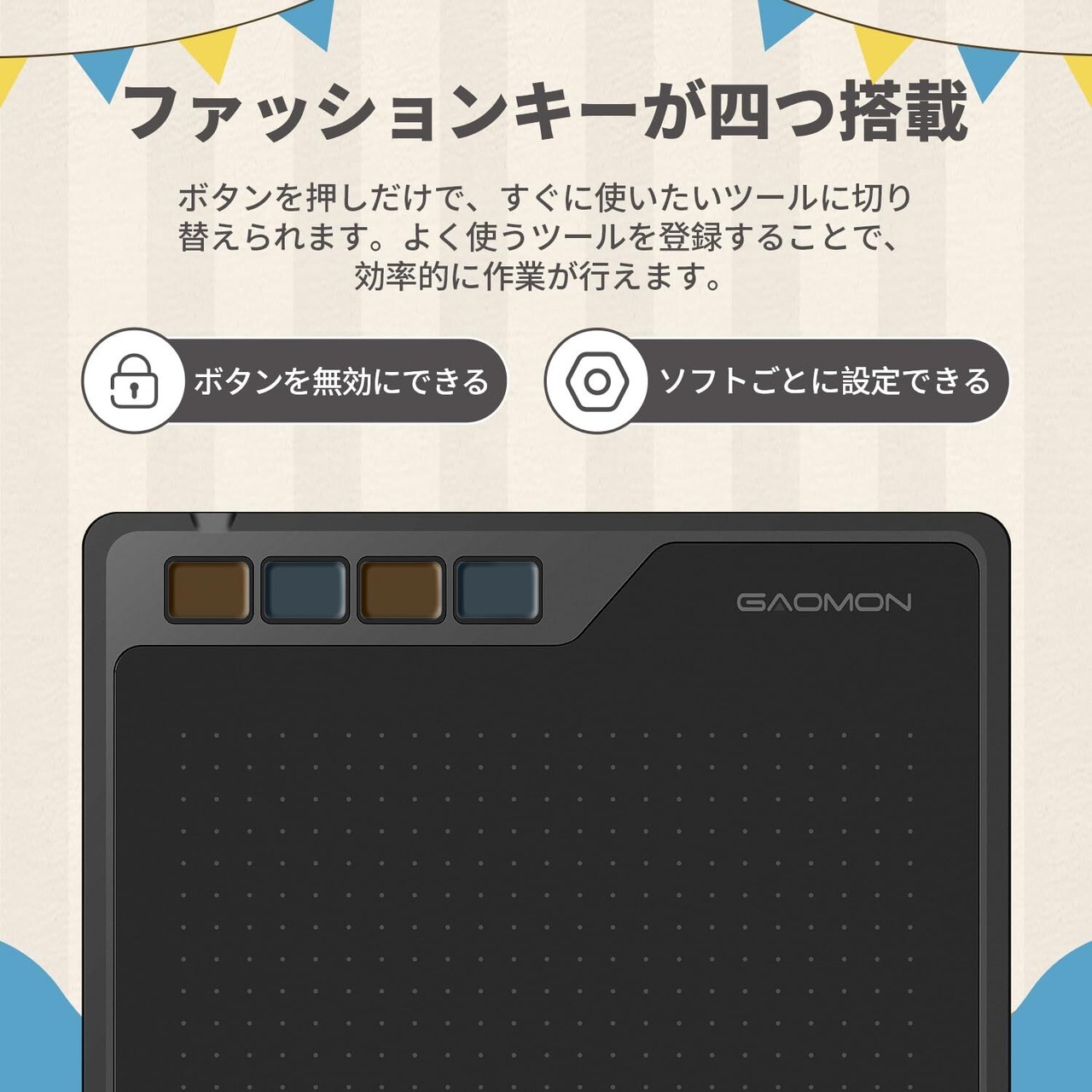 GAOMON ペンタブ S620 6.5x4インチ 板タブ 筆圧8192レベル 4つショートカットキー 充電不要ペン Windows/mac/Android対応 イラスト デザイン クリスタ オンライン授業 初心者 ペンタブレット