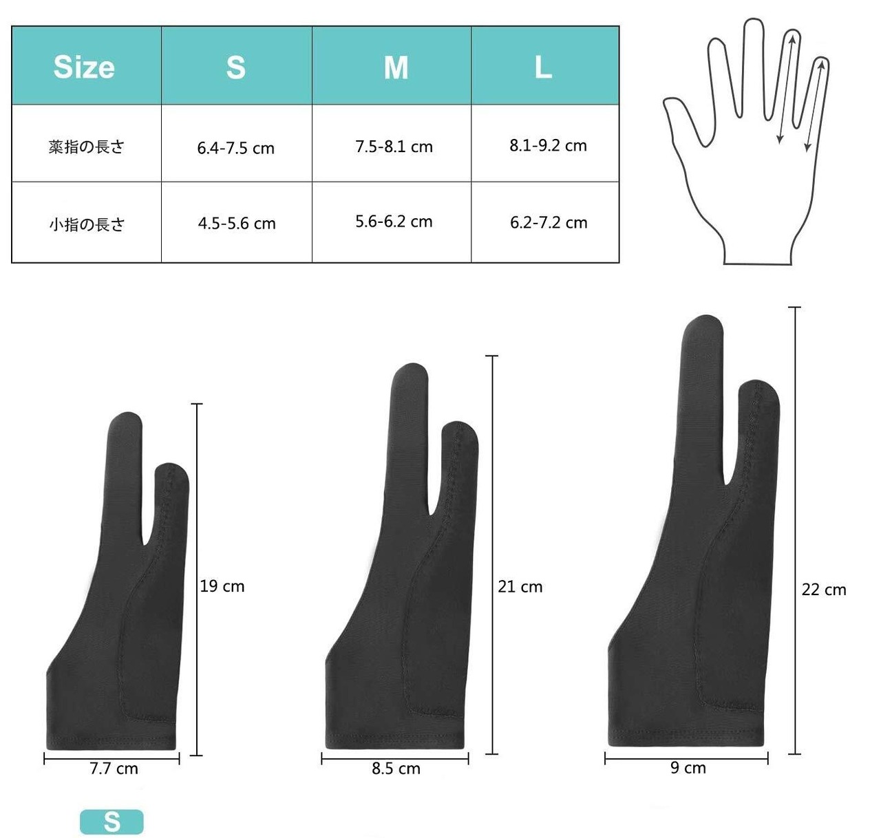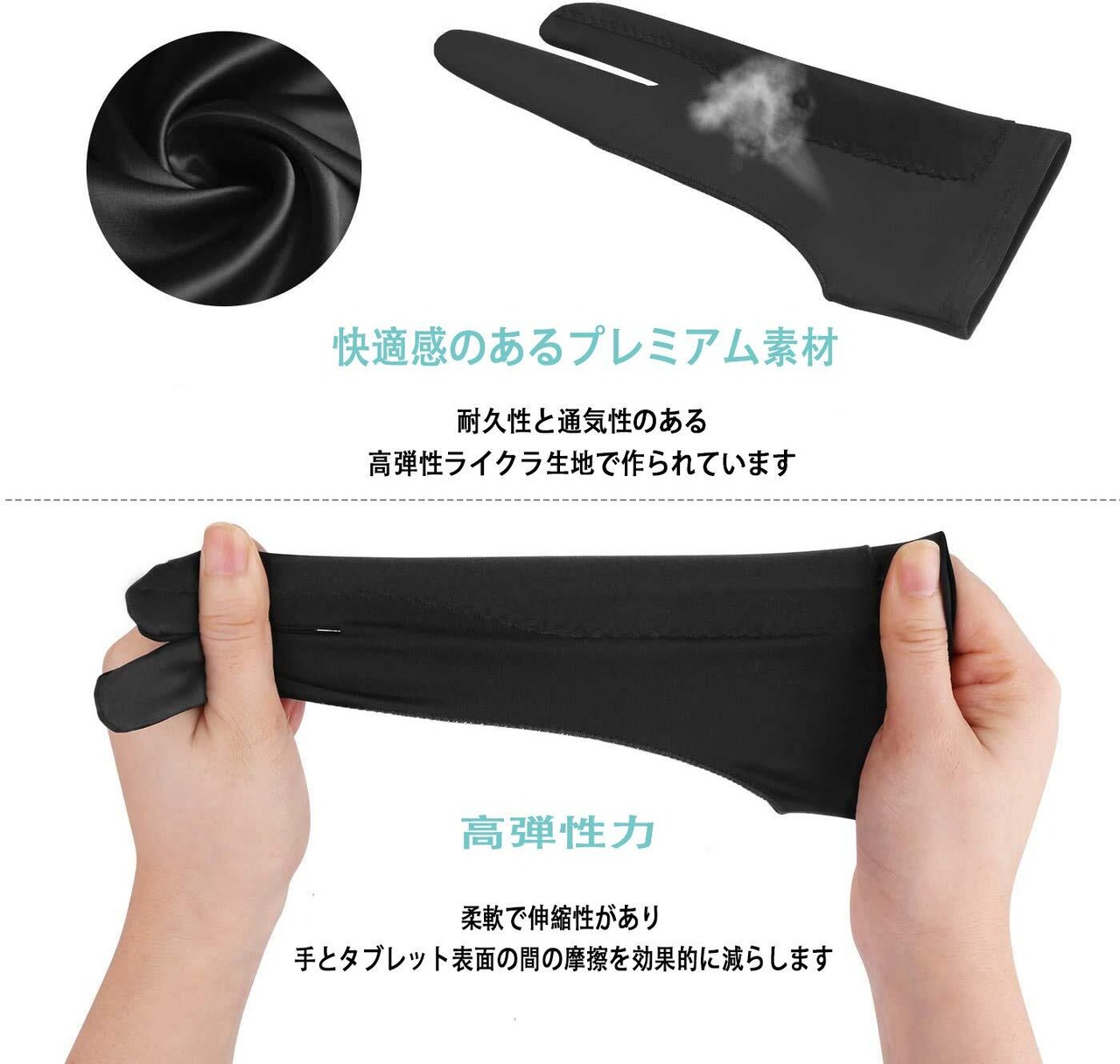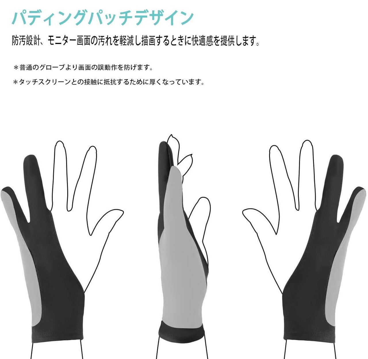 【誤作動防止機能】ペンタブレット・ラトレースライトパッド・グラフィックスモニターに誤動作防止のため、スケッチ、スムーズな描画ができるようになる二本指グローブです。