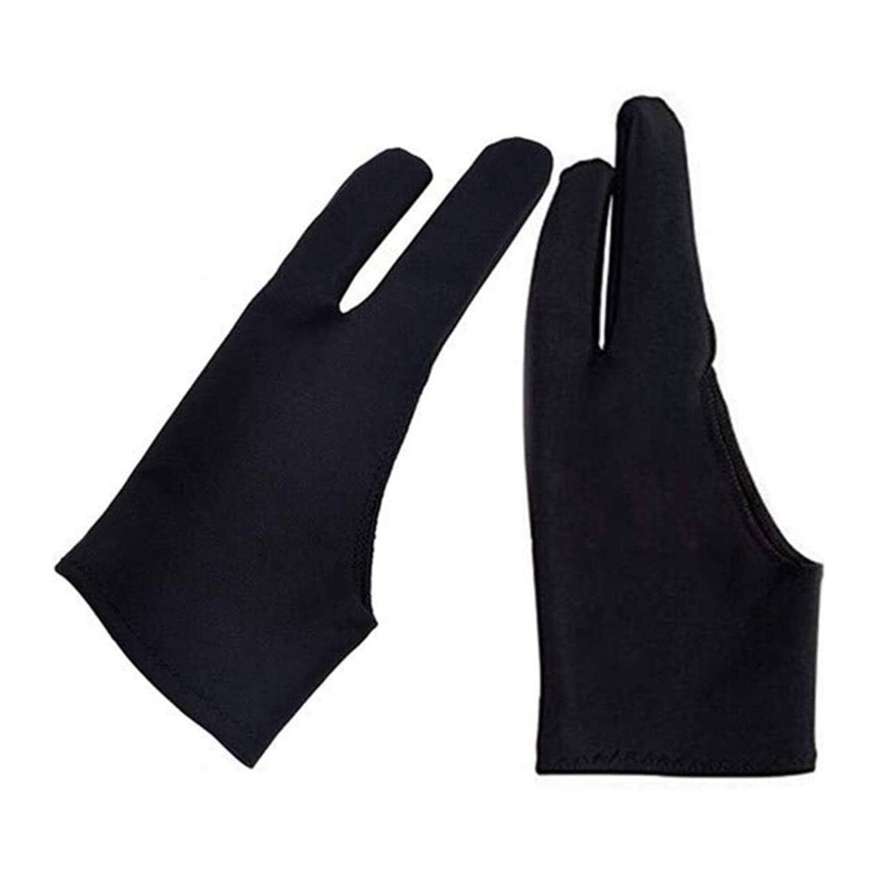 二本指 グローブ 2枚入り 防汚 通気性 超軽量 快適 ライクラ繊維 グローブ タブレット お絵描き手袋 液晶ペン タブレット用 対応 左利き 右利き 便利 通用 フリーサイズ 男女兼用 ブラック