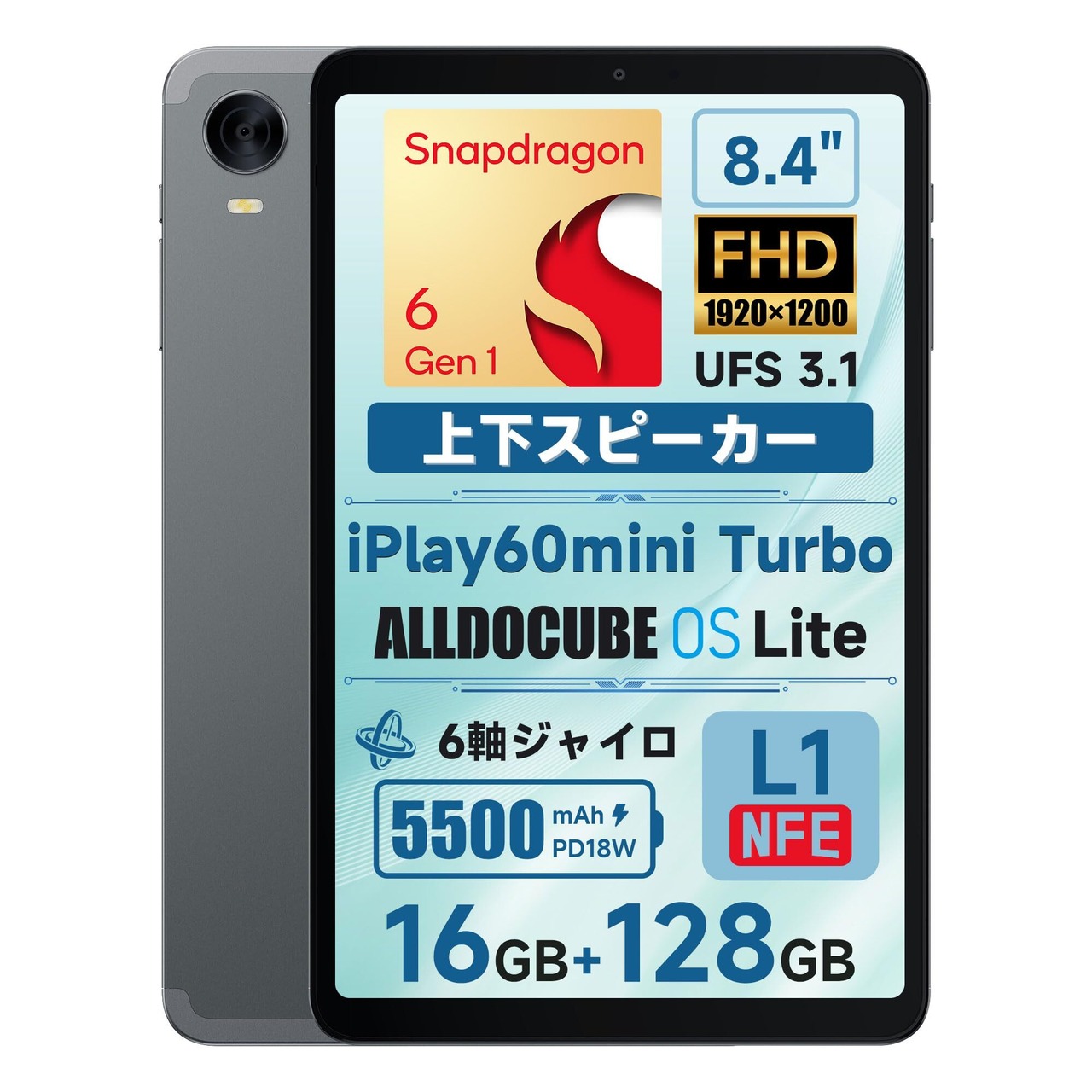 ALLDOCUBE iPlay60mini Turbo タブレット8.4インチ Snapdragon 6Gen1 4nmプロセス 上下スピーカー 6軸ジャイロ 1920×1200FHD 8GB+8GB仮想+128GB+1TB拡張 UFS3.1 5500mAh PD18W WiFi5 WidevineL1 USB3.1Gen1 TypeC DP出力 CtoC/HDMI Android14 タブレット