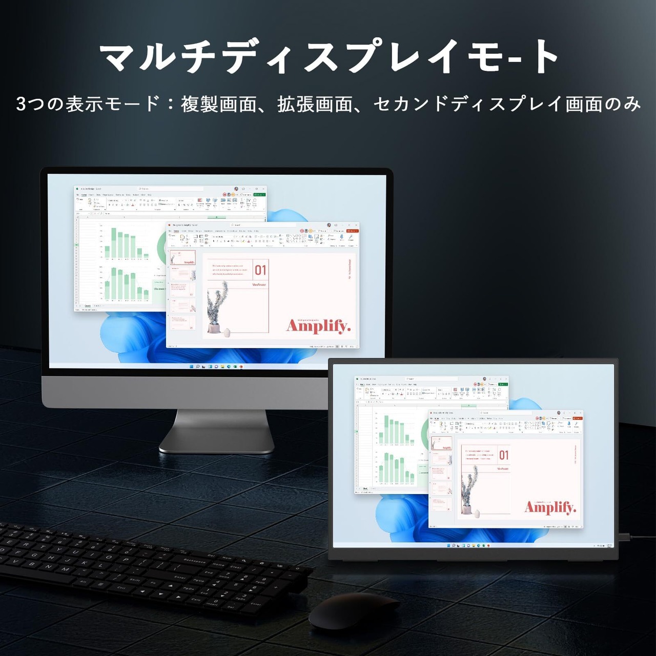 【多機能な表示モード】モニターは、複製モード、拡張モード、セカンドスクリーンモードをサポートしており、自宅でもモバイルワークでも、仕事の効率を上げることができます!ゲーム、ビデオ視聴のニーズに応えます。VESA穴は2つもあり、VESAアームに揺れなく取り付けられます!スタンド付きなので、0°から45°まで自由に調整できます!