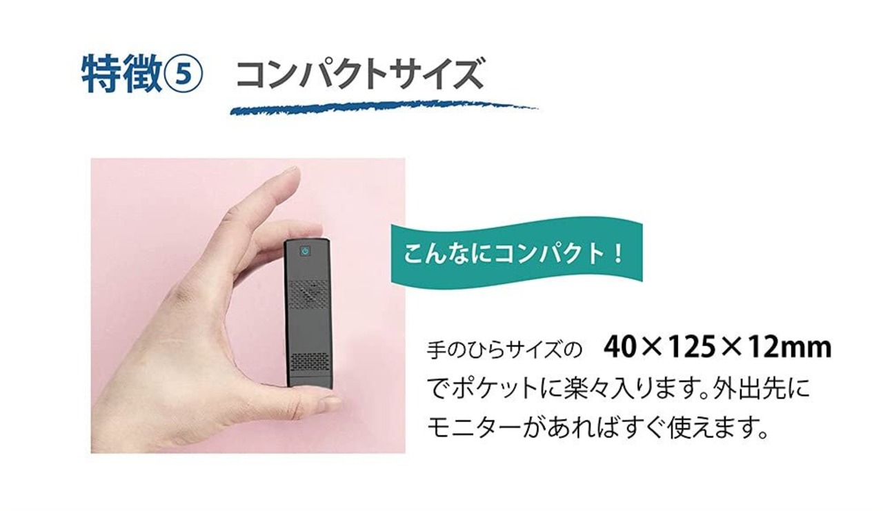 手のひらサイズでポケットに楽々入ります。外出先にモニターがあればすぐ使えます。