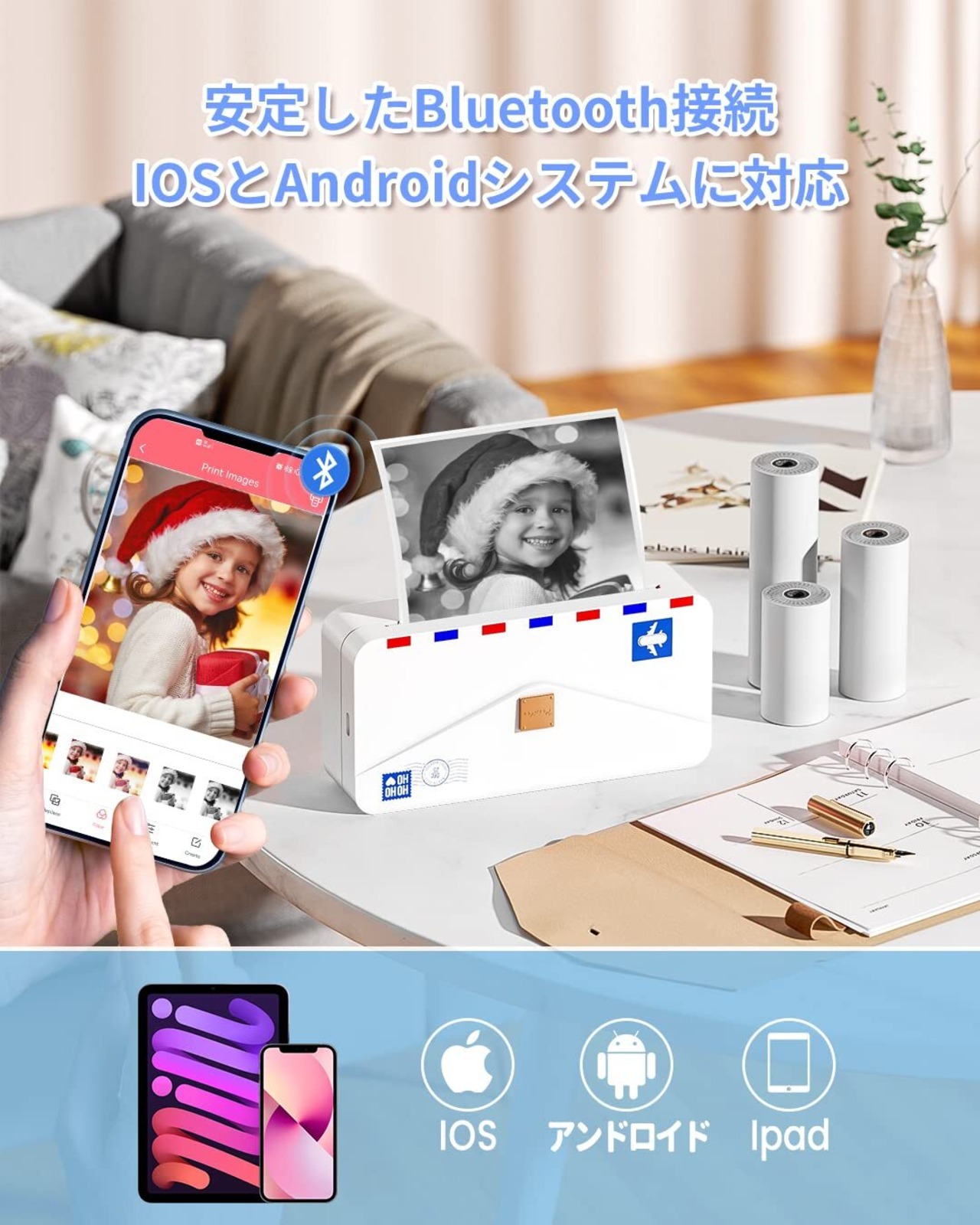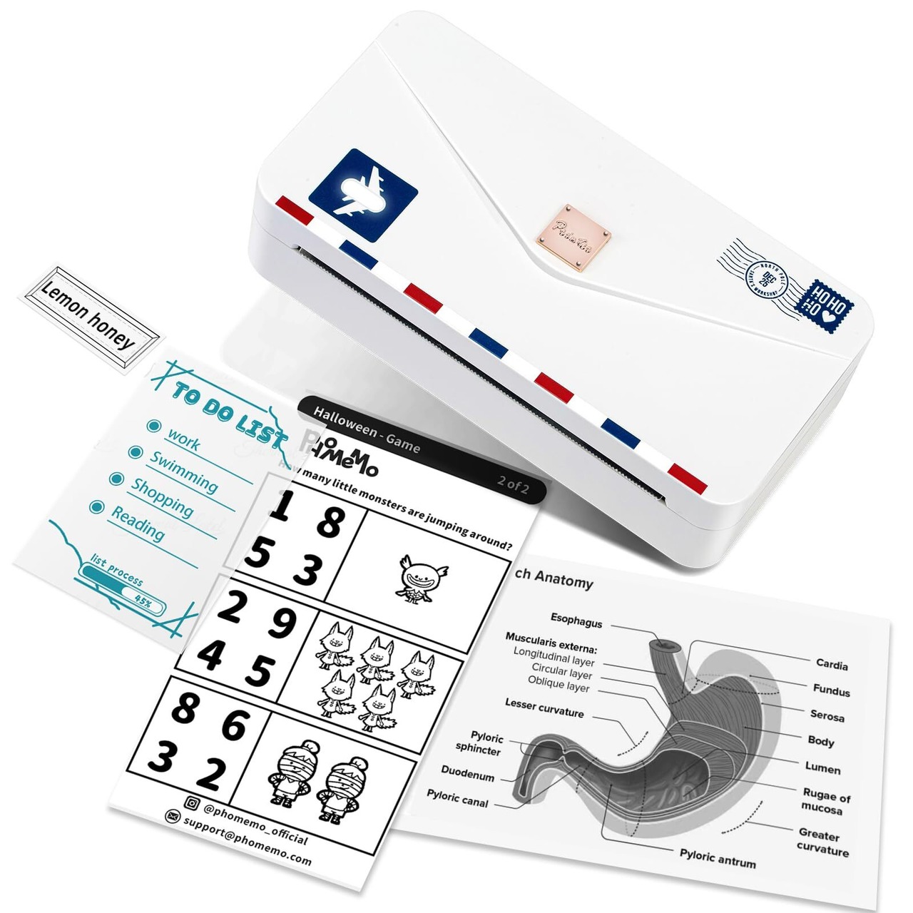 ホーム/オフィス/スクール/ビジネスでの使用に適した多機能サーマルプリンターPhomemo M04ASです。 リストや文書、学習ノートを印刷することができます。また、白黒写真やステッカーも印刷できます。透明な感熱紙を使用するとより良いです。クリスマス/感謝祭/誕生日プレゼント選びのギフトにもおすすめです。