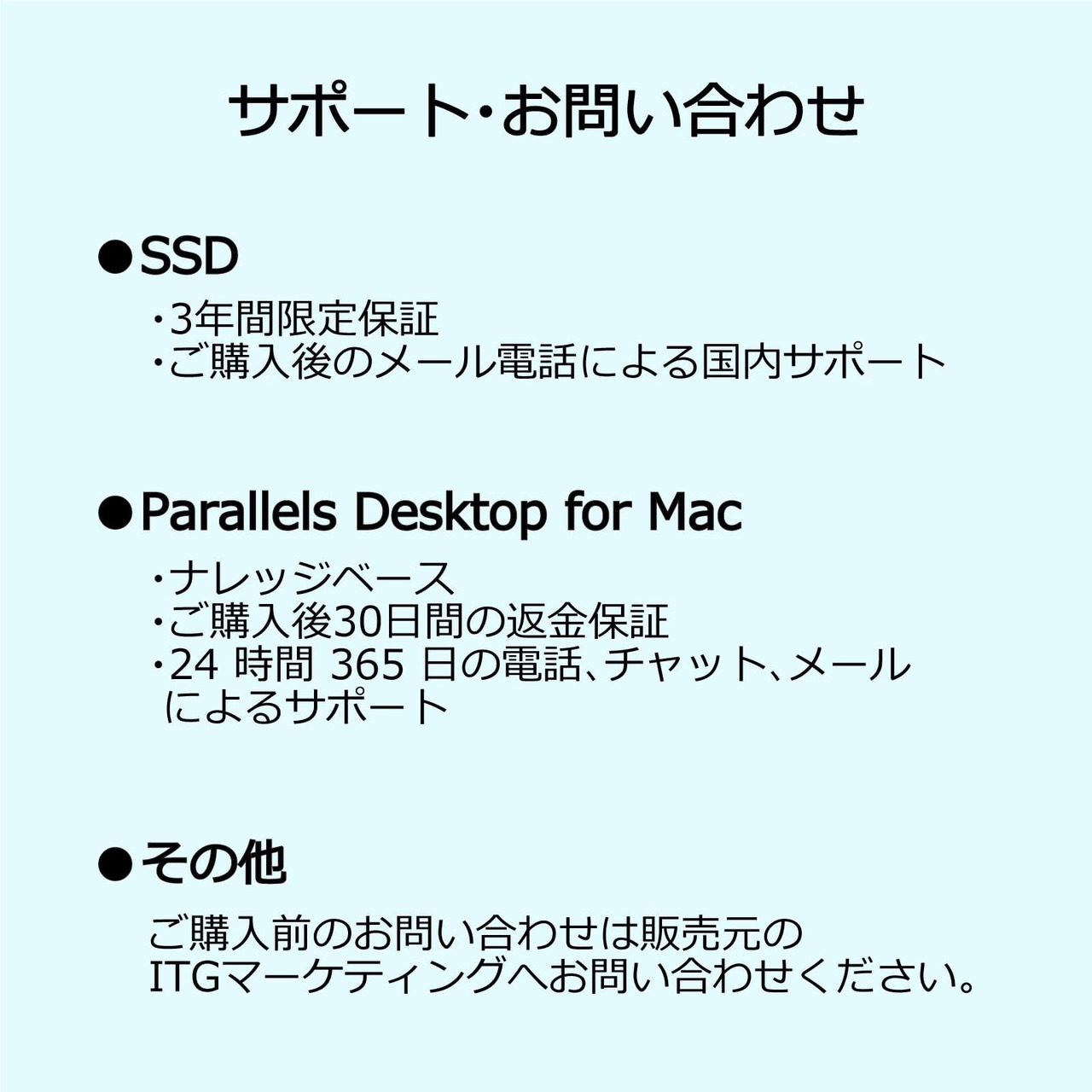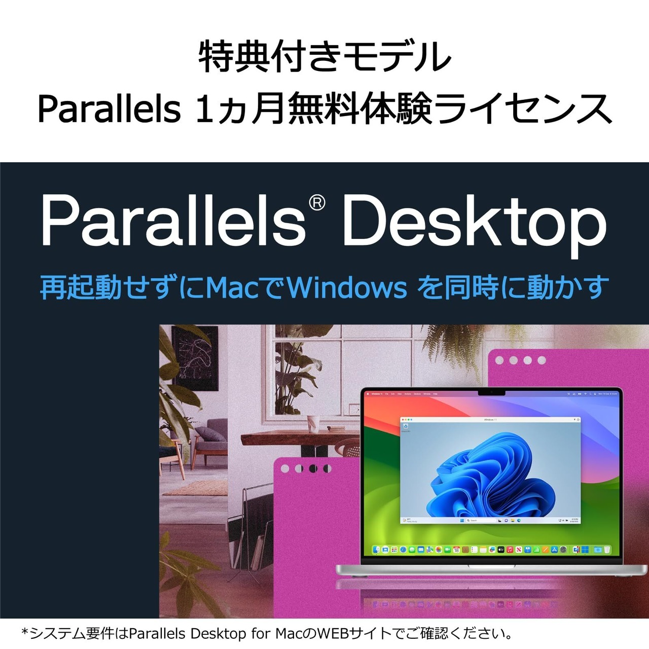 付属コンポーネント USBケーブル(C to A、C to C)、クイックスタートガイド、Parallels Desktop for Mac 1ヶ月無料体験ライセンスコード