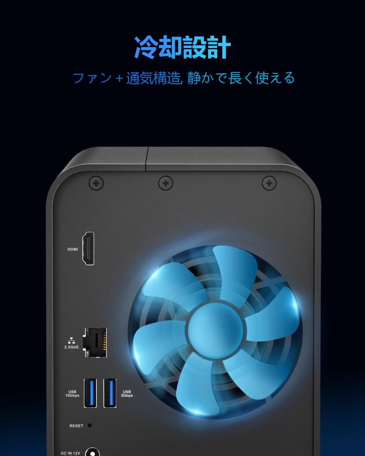 家族で使える高性能NAS:Intel x86搭載、4K動画もスムーズ。スマホ・PCの自動バックアップや写真共有に最適。個人・家庭用ストレージの買い替えにも。