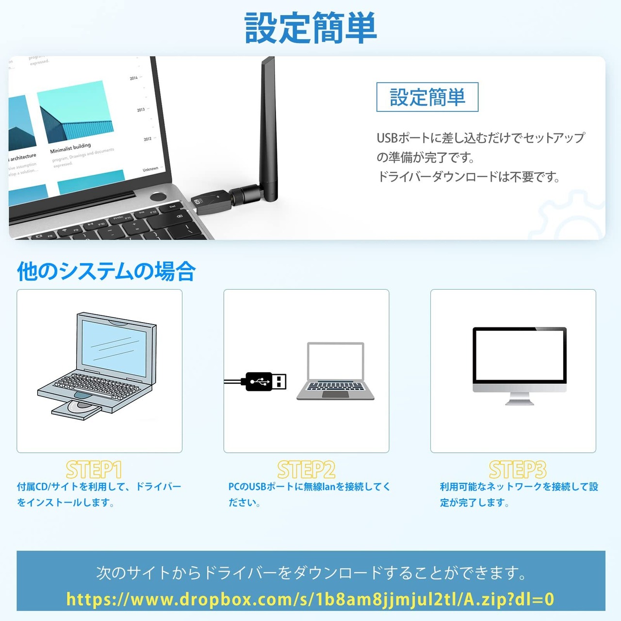 【最新OSに対応&安心】 Kimwoodの無線子機は幅広い交換性があり、WindowsXP/7/8/8.1/10/11/ Mac OS X 10.6 -10.15をサポートします。本wifi 子機は一年の期間があり、もし使用中にご不明点がございましたら、お気軽にお間に合わせてください。セット内容:無線LANアダプター本体/インストールCD/日本語取扱説明書。