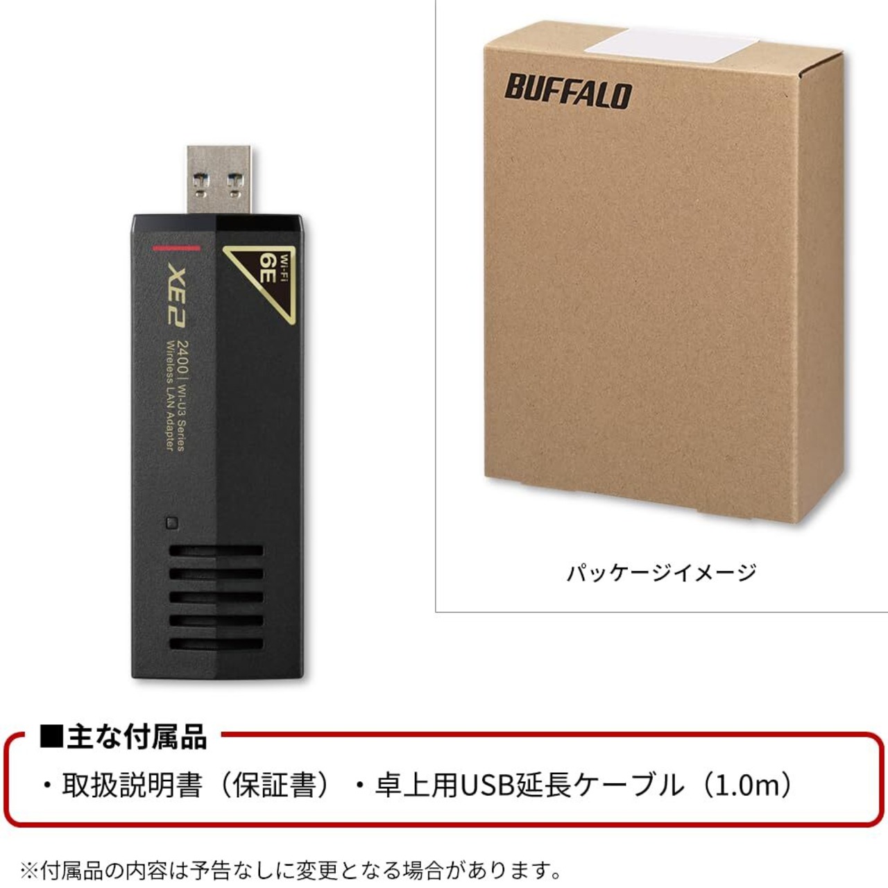 バッファロー Wi-Fi 6E 11ax 6GHz 無線LAN 子機 USB3.2 (Gen1) 対応 内蔵アンテナ タイプ ドライバー内蔵 WI-U3-2400XE2/N