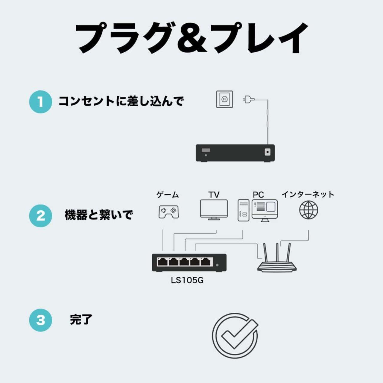 TP-Link 5ポート スイッチングハブ ギガビット 金属筐体 設定不要 ライフタイム LS105G