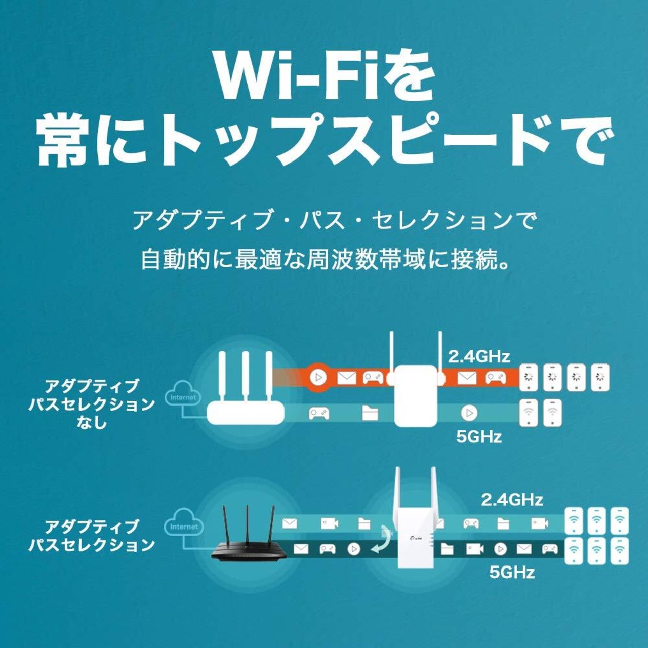 [特徴] Wi-Fi6対応 AX1800規格 中継機。最先端の技術で高速Wi-Fi通信を実現。