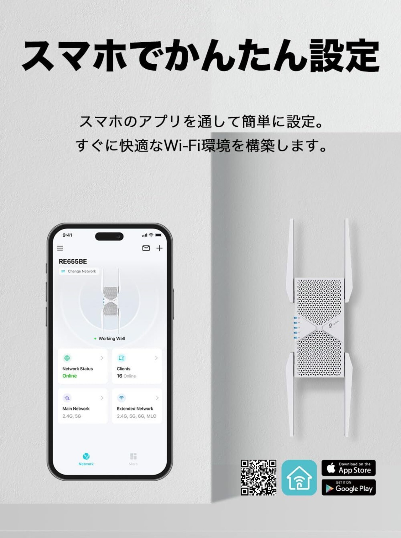EasyMesh互換: EasyMesh対応のネットワーク機器と連携させることで、シームレスで柔軟性に富んだ家じゅうをカバーするメッシュネットワークを構築します。