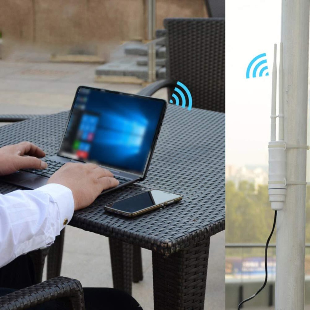 【広範囲適用可能】 2つのアクセスリピーターを組み合わせることで、カバレッジをさらに拡張できます。この機能により、農村地域、農場、遠隔地などにワイヤレスベースステーションを設置し、広範囲での通信を提供可能です。