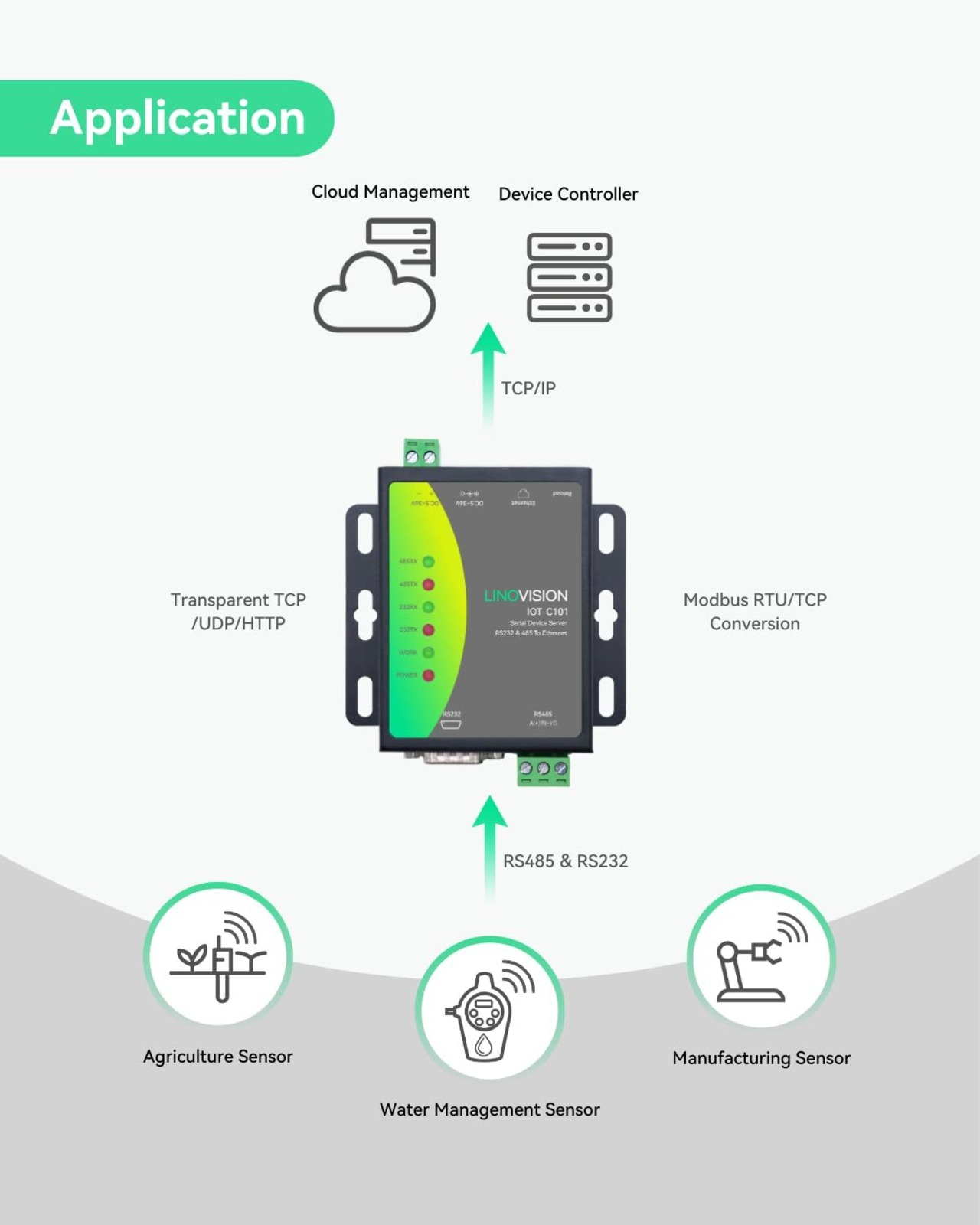 アプリケーション - POSシステム、農業センサー、PLC、遠隔監視と制御を必要とする医療機器など、RS232とRS485を使用するシナリオに適しています。