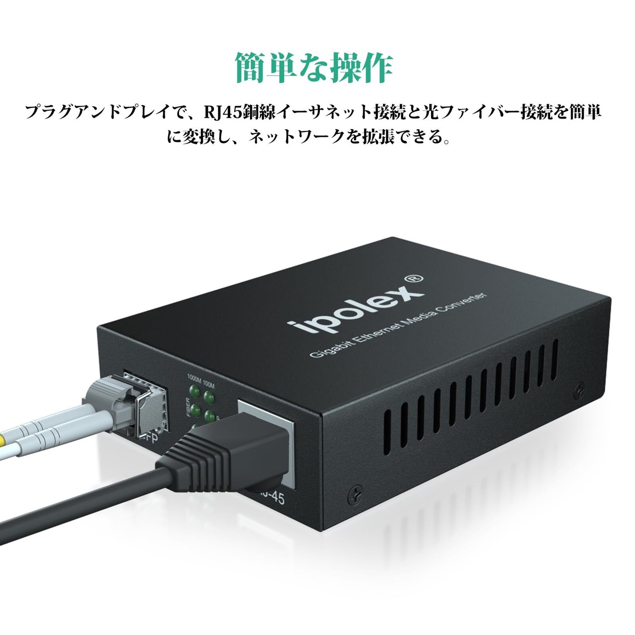 ipolex 光回線 メディアコンバーター デュプレックスシングルモード SFPモジュール付属(1310nm/20km)10/100/1000Base-Tx から 1000Base-LX ギガビット ファイバー メディアコンバーター