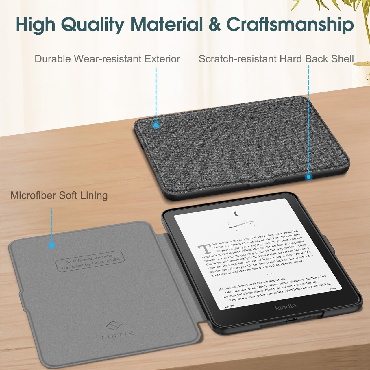 Fintie for Kindle Paperwhite/Kindle Paperwhite シグニチャーエディション 第12世代 ケース 2024年発売 Newモデル 7インチ用ケース 保護カバー 軽量 薄型 オートスリープ機能付き(グレー)