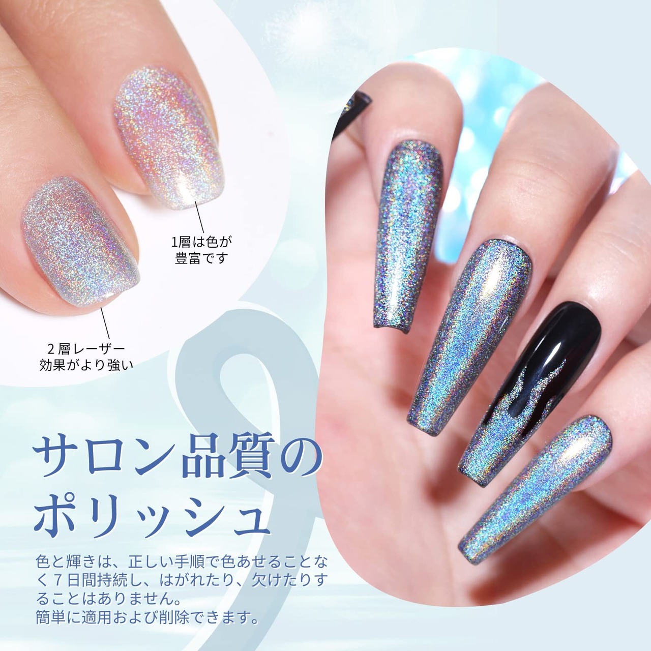 BORN PRETTY マニキュア ユニコーンネイル ラメ入り キラキラポリッシュ 微粒子 ホロ 眩しい虹色 レーザーグリッター ネイルポリッシュ