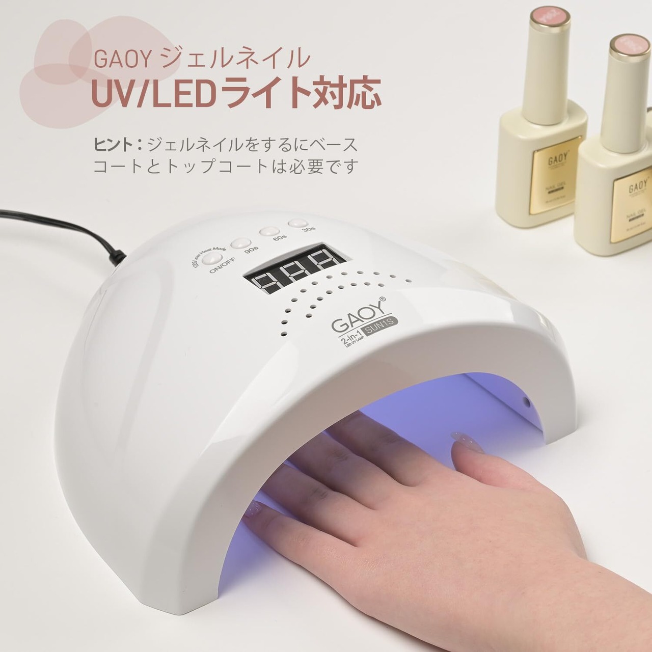 UV・LEDライト対応: UV・LEDライトを60秒間照射させて、ジェルを硬化させます。