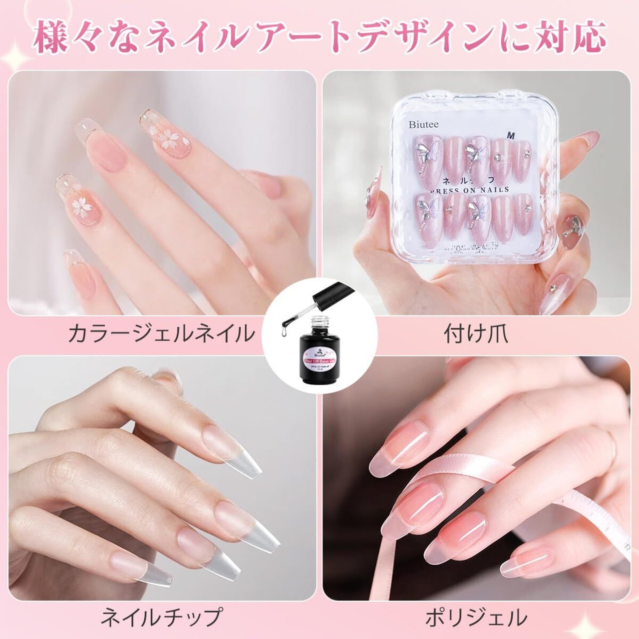 【UV/LEDライト対応】UV/LEDライトで硬化必要。UVライトでもLEDライトでも硬化できますので、お手持ちのライトですぐ使えます。硬化時間目安:36W UVライト:60~120秒 / 36W LEDライト:30~60秒(※上記は目安であり、お使いのライトのパワーや塗布の量により異なります。)