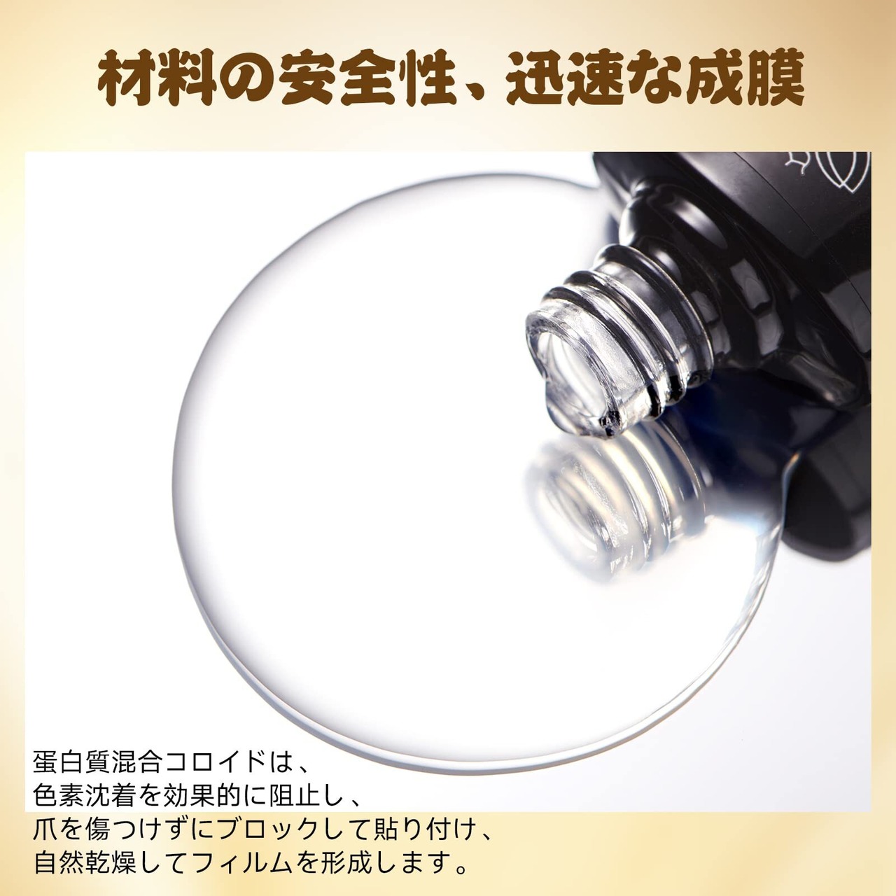 UV/LED不要、自然乾燥:UVランプを照射して硬化させる必要はなしで自然乾燥でき、黒ずみもなく手に優しい
