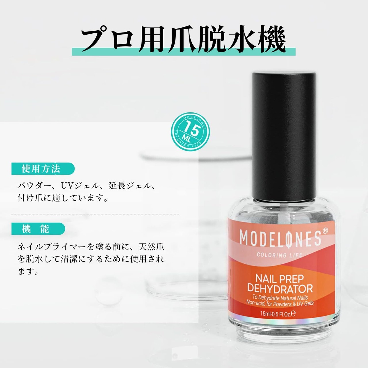 Modelones ジェルネイル プライマーセット ネイルデハイドレイト 長さだしジェル ジェルネイルポリッシュなど適用 自然乾燥 密着性高め 脱水 油分取り抜く 大容量15ml