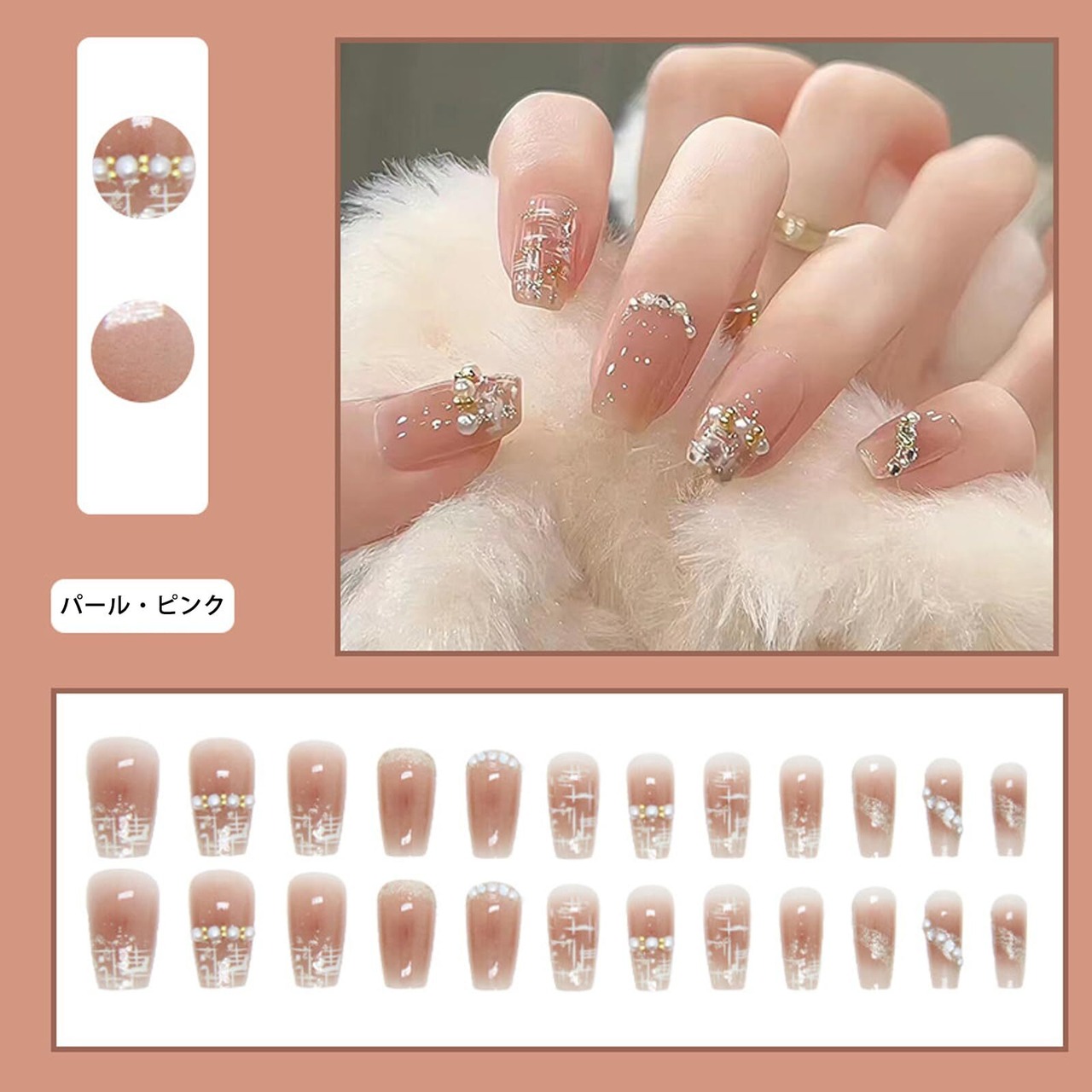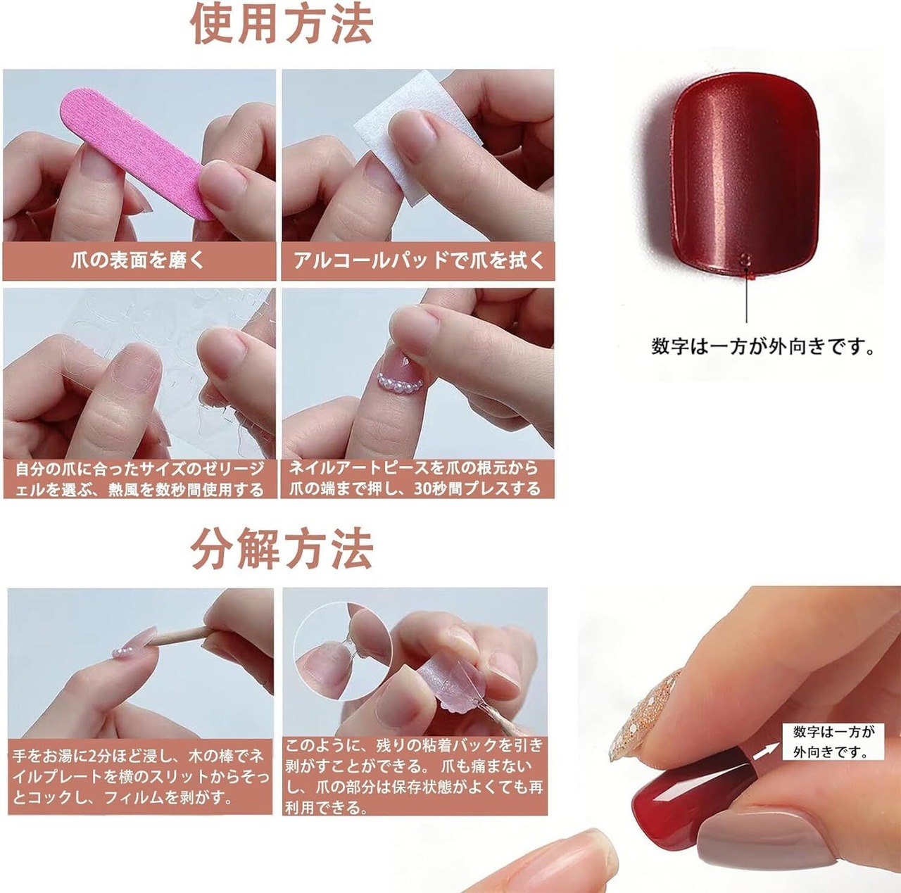 【リッチセット内容】この商品には24枚のセットが含まれており、予備用のネイルチップも一緒に提供されます。さらに、両面テープや爪やすり、木の棒もセットに含まれています。到着後すぐに使用できるので、お客様に便利です。さらに、両面テープに2秒間熱風をあてると、さらにしっかりと貼り付けることができます。