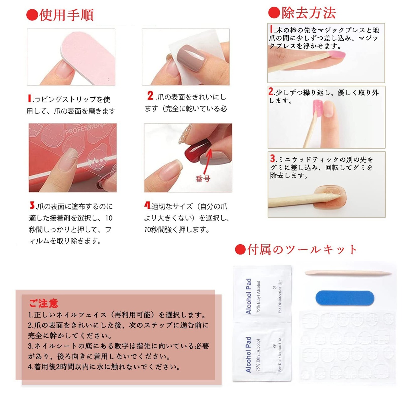 【安全 便利】最短2分間だけでネイルチェンジ!ネイルチップ用品セット付き、使いやすくて、初心者でも楽ちんで簡単にできます。