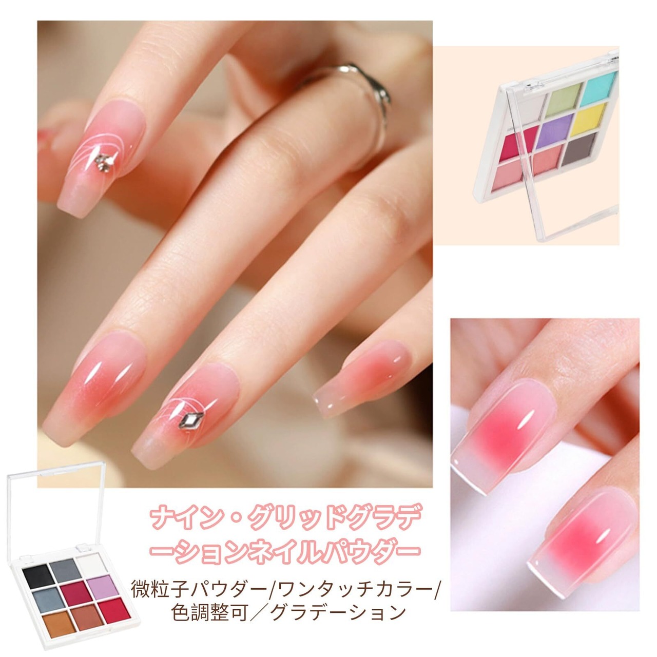 【使いやすさ】 グラデーションネイルパウダーは、初心者からプロまで使いやすいパウダーです。 スポンジチップを使えば、ひとふきでグラデーション、ミラー、オーロラの美しいネイルアートができます。