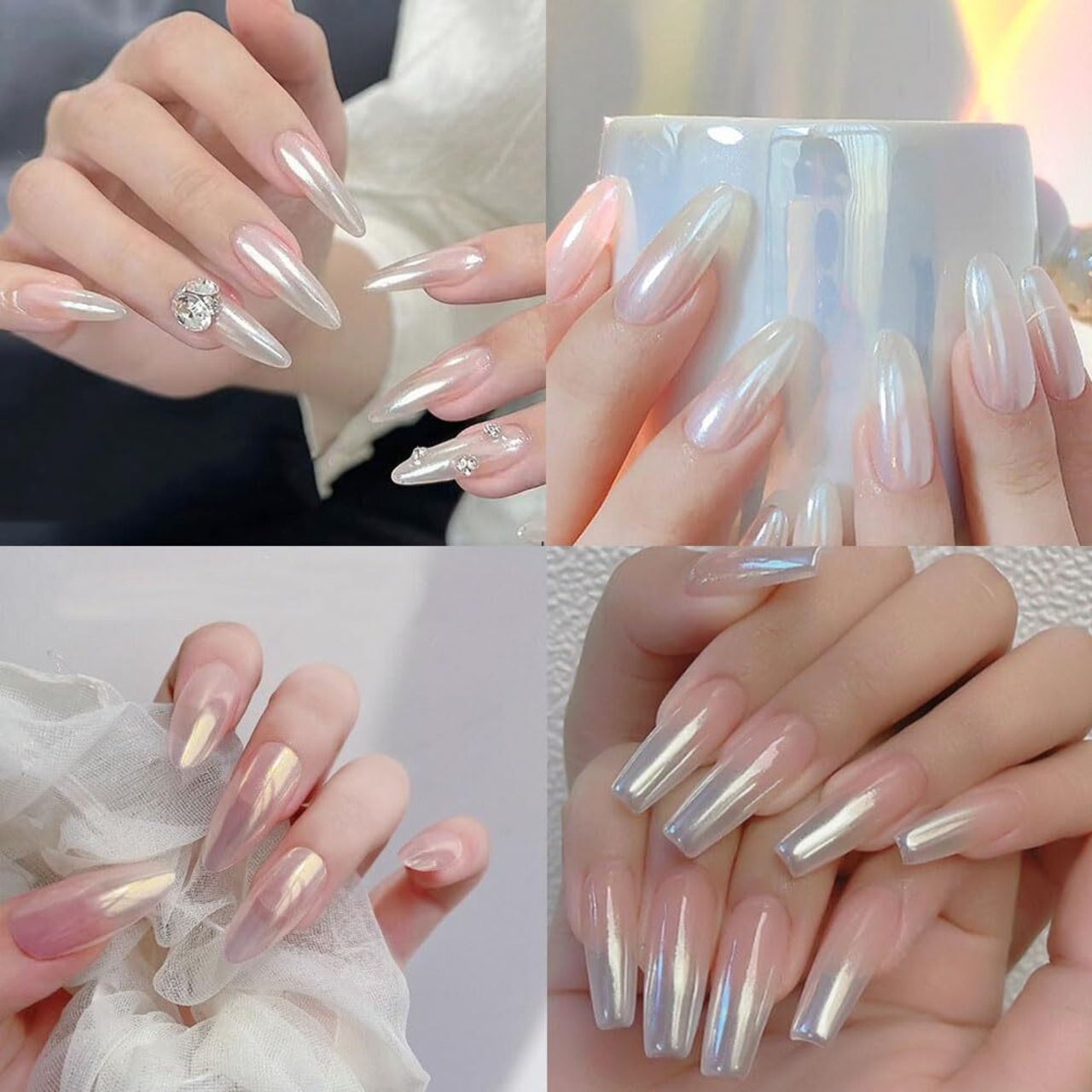 【使いやすい】まず爪を清潔に保ち、次に好きなベースカラーのマニキュアを塗り、リーブオンシーラーを塗り、リーブオンシーラーが完全に乾く前にマーメイドパールネイルグリッターを塗り、最後にリーブオンシーラーを塗ってLED/UVライトで完全に乾燥するまで光らせます、毎回素晴らしいネイルアートを実現できます。
