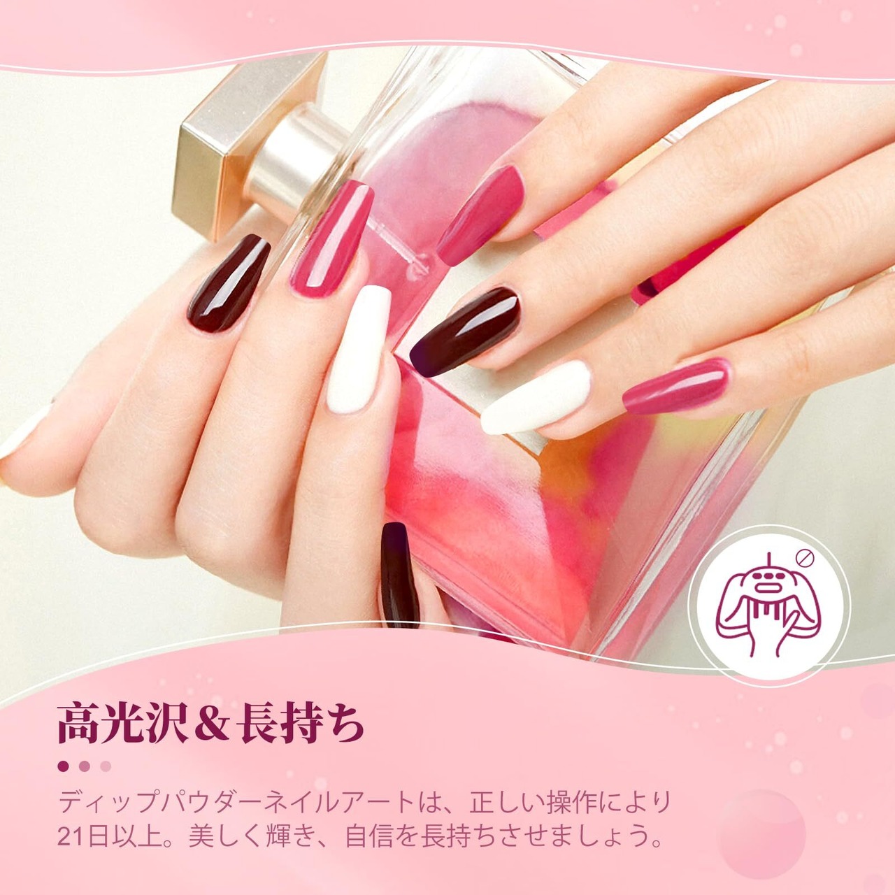 【自宅でDIYディップマニキュア】SAVILANDディップパウダーリキッドセットは、ディップネイルアートが大好きな奥様、お母様、ご友人に最適です。ディップパウダーリキッドセットを使用するときは、換気に注意してください。キャップを締めて保管し、ネイルディップ液を高温や直射日光から遠ざけてください。