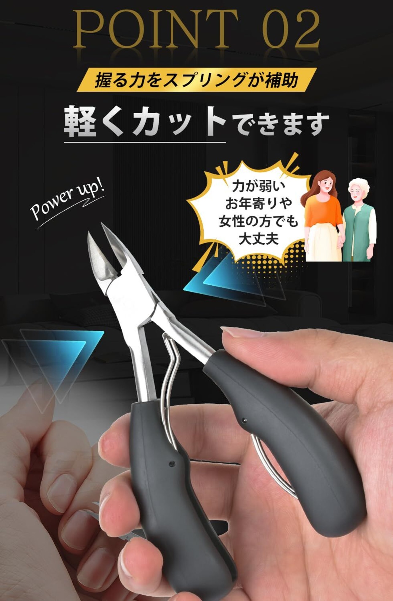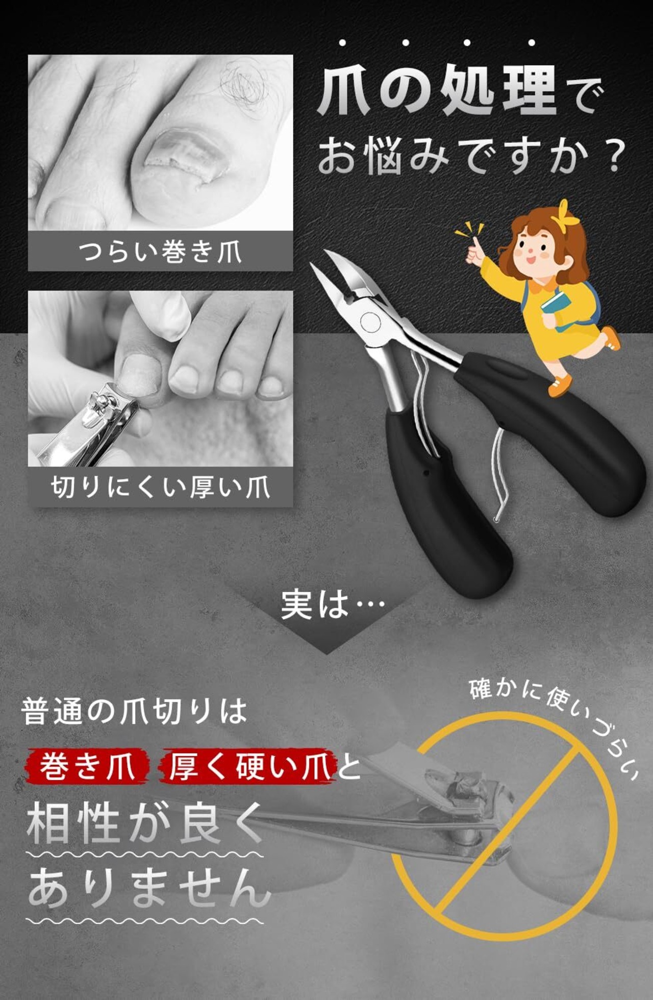 【巻爪用ニッパーつめきり】硬い足爪、巻爪、変形爪のカットに最適なクラシックタイプ(ニッパー)の爪きりです。ニッパー先端は爪に沿わせやすい形状になっているので、足の親指の食い込みや陥入爪・巻き爪などの変形した爪の細かい部分まで綺麗にカットできますおかげ様で大人気の【爪切り ニッパー式】です。