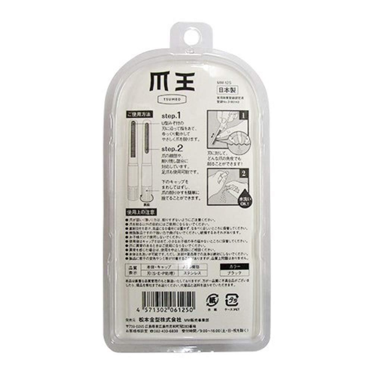 深爪を防ぎ、安全性に配慮した仕様で、収納や携帯に便利なペン型です。