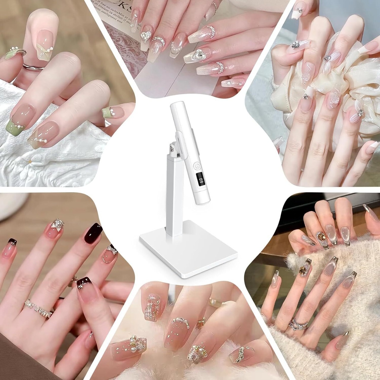 【頑丈なスタンドデザイン】このUVネイルライトには磁気吸引スタンドが付属しており、取り外しが簡単で、手持ちとスタンドを固定して使用することができます、安定感があり、操作に余裕があります。 手動で操作するにも、スタンドに手持ちのネイルランプを固定してネイルを乾かすにも、どちらにも最適です。