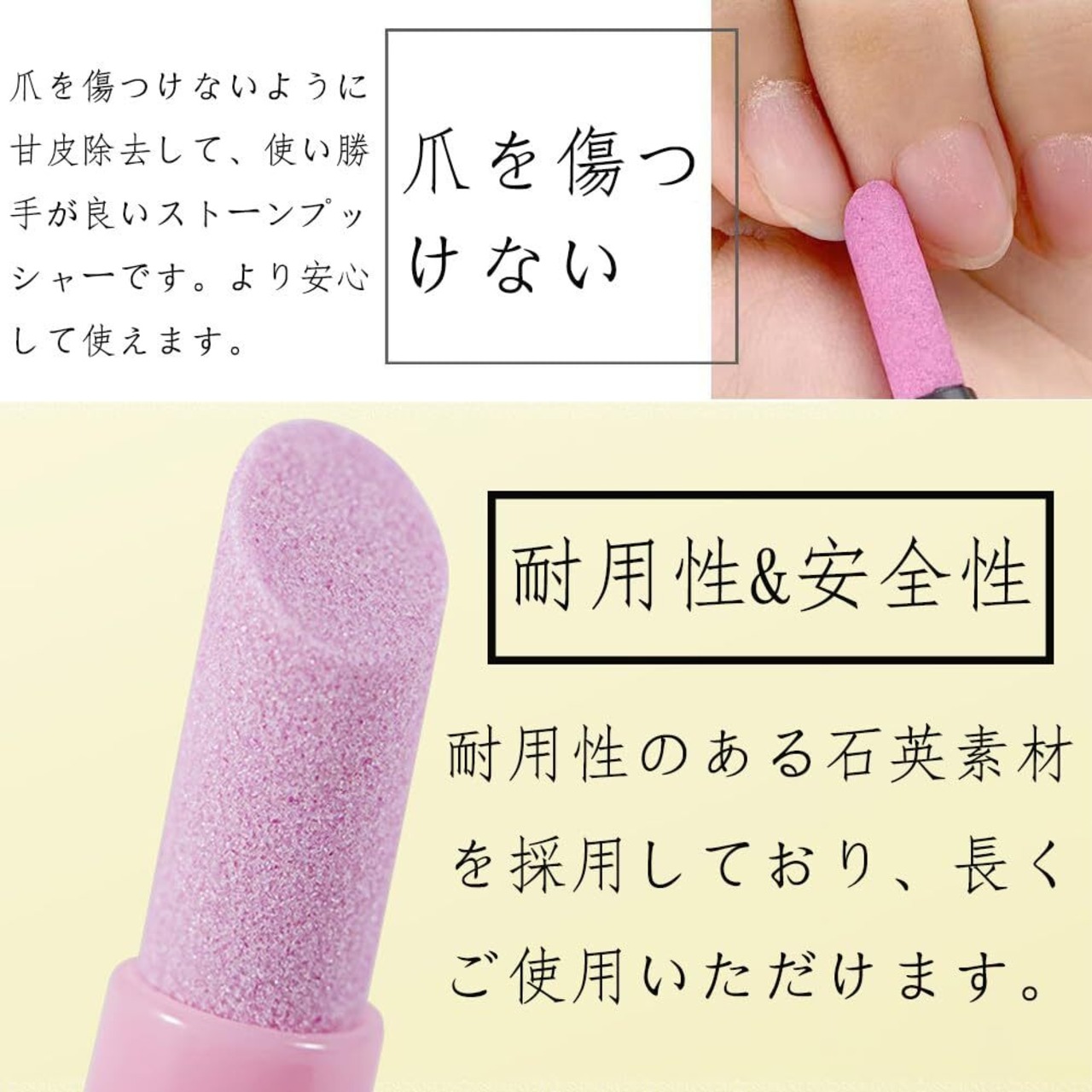 高品質:強くて、耐久性がある高品質の素材で作られています。長くご使用いただけます。爪を傷つけないように甘皮除去して、使い勝手が良いストーンプッシャーです。