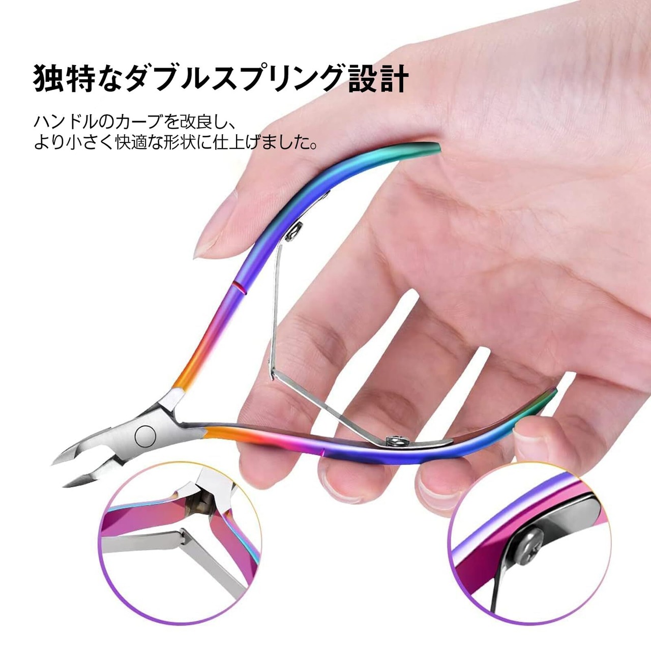 Easkep キューティクルニッパー 甘皮処理 爪切り ニッパー ネイルケアセット甘皮切り ささくれ ケア 爪垢取り ネイルパーツ ネイルケアツール 鋭い刃先でスムーズな処理 プッシャー付き 可愛い(レインボー)