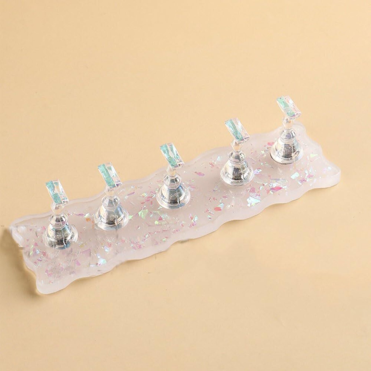 【パッケージ内容】おしゃれでキラキラ感がある波模様のネイルスタンドが登場。アクリル台座*1、ネイルチップスタンド*5